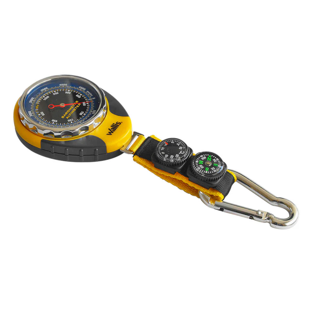 Altímetro multifuncional, con correa y gancho para colgar, amarillo con gris