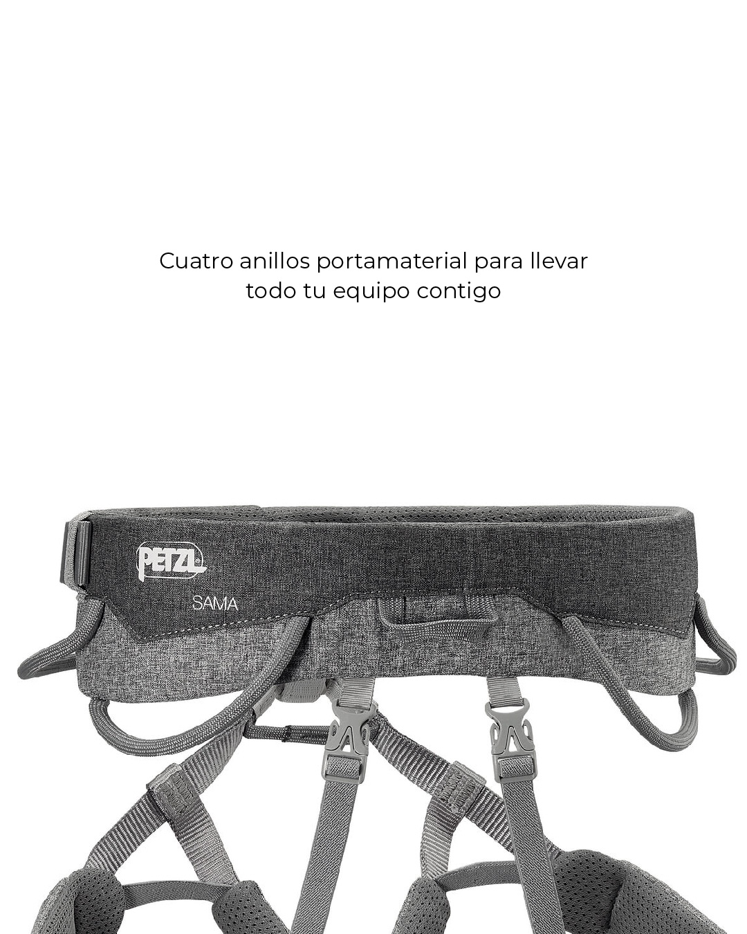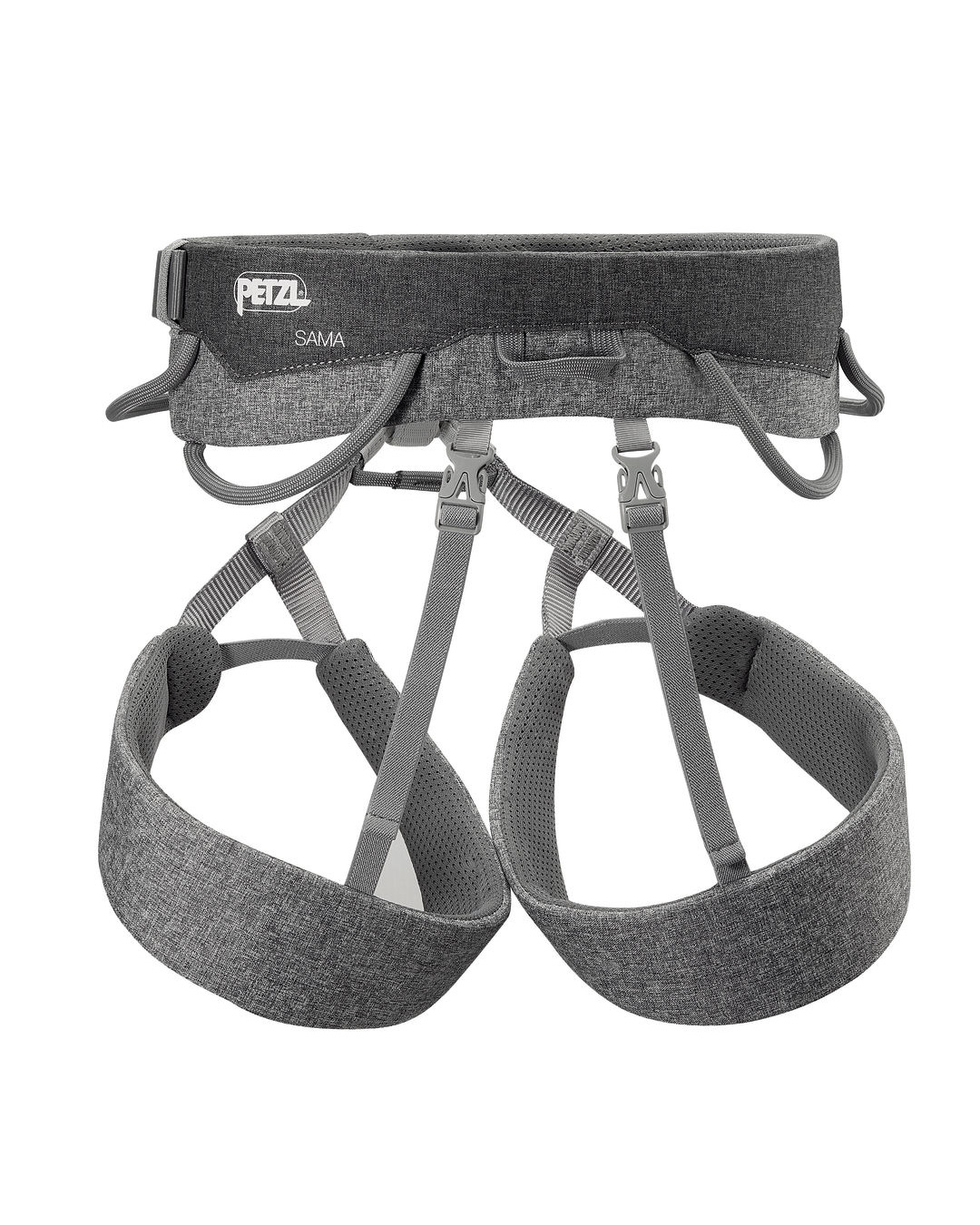- El Arnés para escalada Sama de Petzl tiene cinturón y perneras acolchadas.