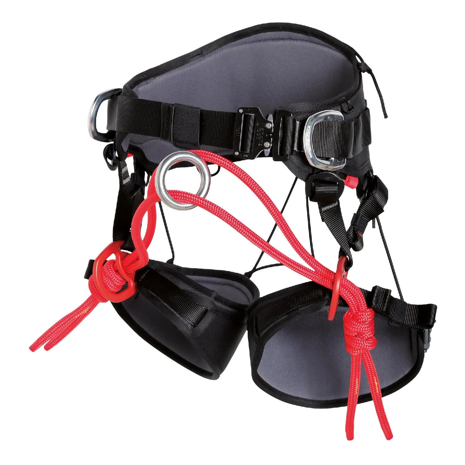 - Cuenta con un puente de conexión de las perneras extraíble e intercambiable para la variabilidad del trabajo en la copa del árbol y un puente de conexión de cuerda doble para dos puntos de conexión independientes (EN 813) con una resistencia de 15 kN