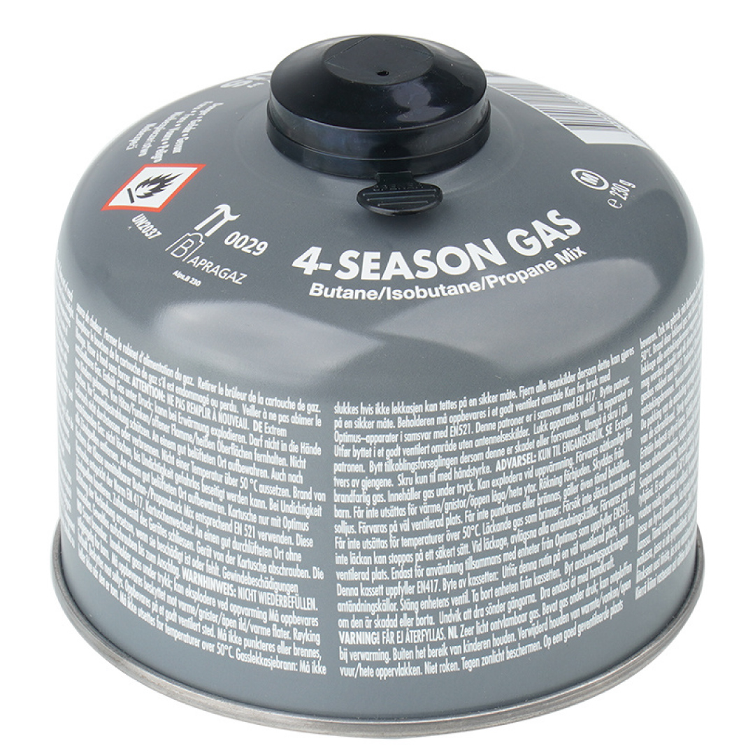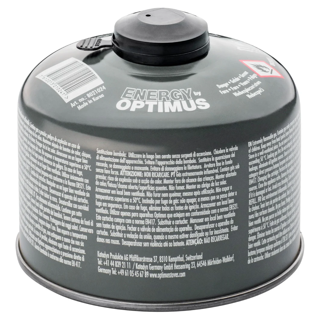 • El balón de gas portátil de 4 estaciones 230gr de Optimus cumple con las normas europeas para el transporte de gas licuado.