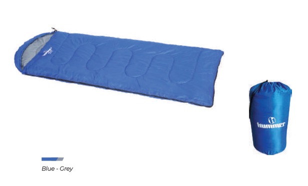 Bolsa de dormir con temperatura confort de 20°C y extrema de 10°C. Con exterior de poliéster 190T, interior de poliéster pongee 170T y relleno de poliéster 200g/m².