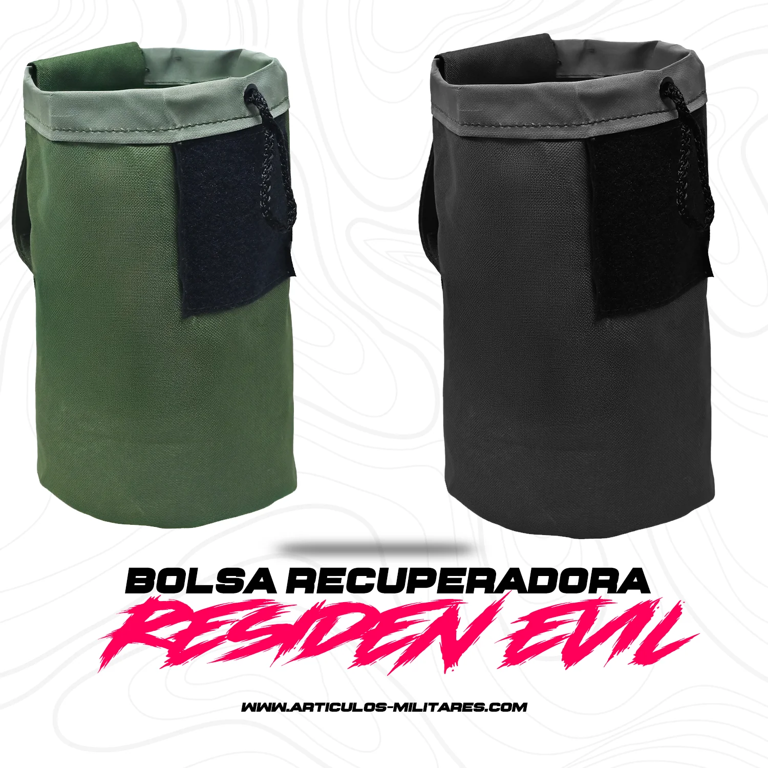 Bolsa táctica de reabastecimiento con diseño plegable e impermeable. Hecha de nylon de alta resistencia con recubrimiento interno que protege tus objetos de la humedad y el polvo. Ideal para actividades al aire libre, militares, senderismo, campismo o uso urbano.