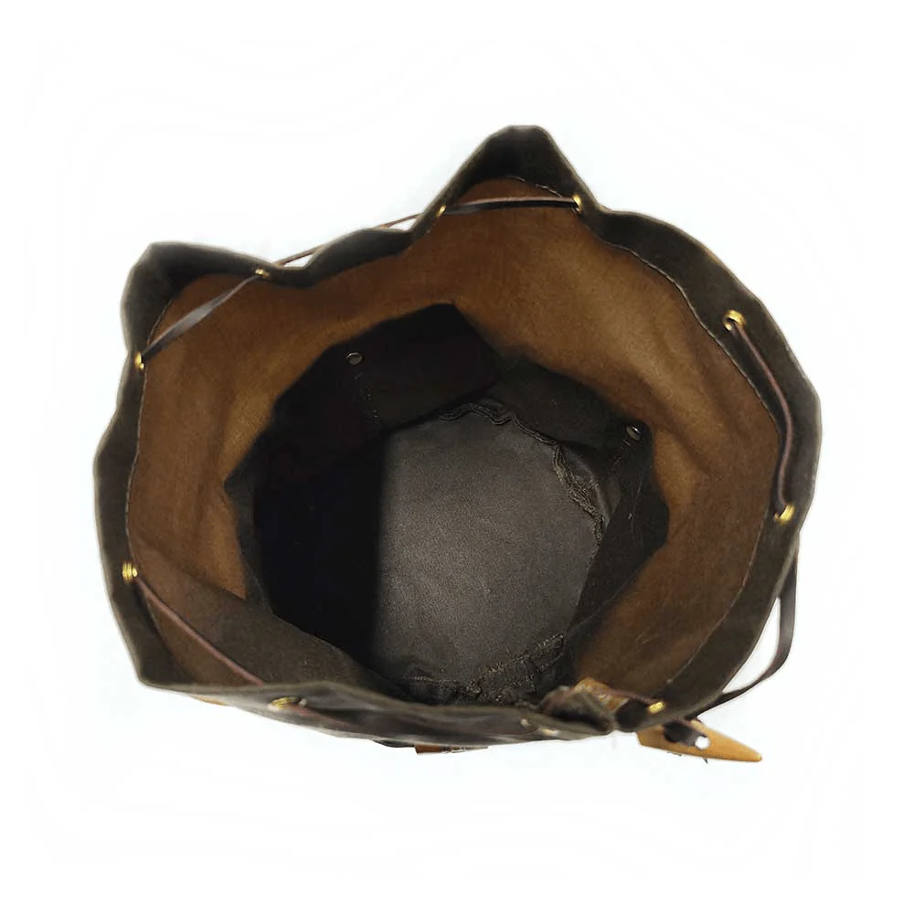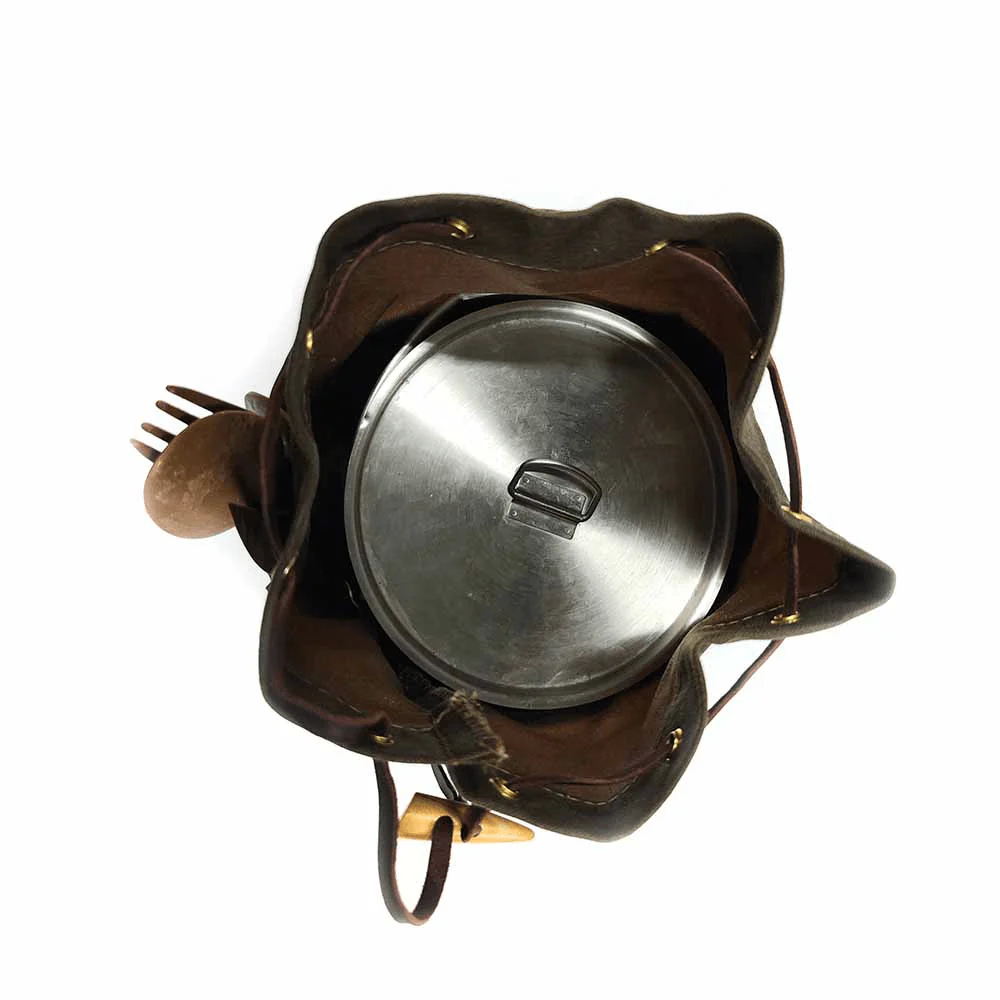 Presentamos la Bolsa para Ollas Bushcraft, una pieza artesanal fabricada con piel de aceite que incorpora bolsillos adicionales para tu kit de cocina. Diseñada para satisfacer las necesidades de los entusiastas del bushcraft, esta bolsa está confeccionada con cuidado y atención a los detalles.