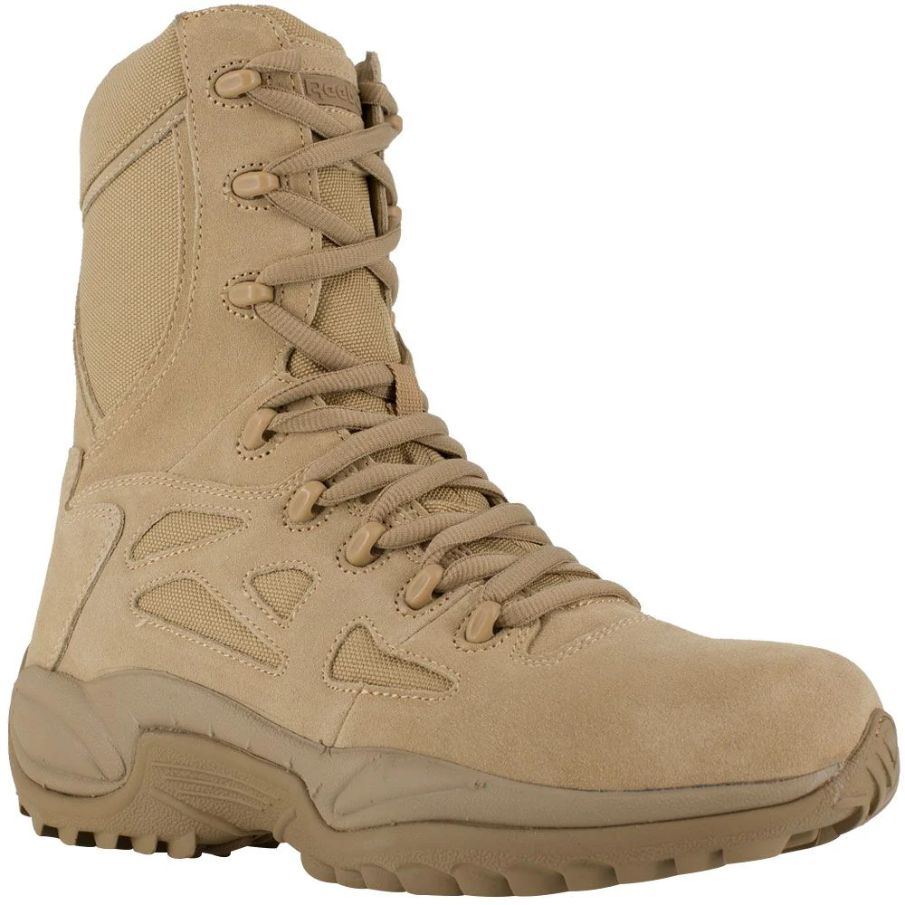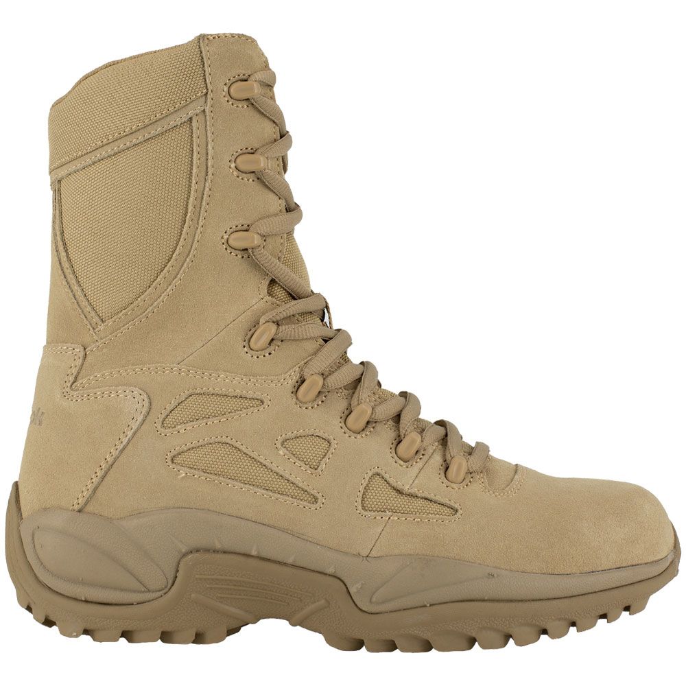 Botas de trabajo sin punta de seguridad para hombre Reebok. Cuando los peligros del trabajo lo pongan en riesgo, vístase con calzado de alta calidad y proceda con confianza. El resistente Rapid Response es la respuesta de Reebok a una variedad de desafíos laborales, con resistencia a los productos químicos, al aceite y al deslizamiento para mantenerlo sobre una base sólida todo el día. Se ajustan perfectamente, con cordones frontales y cremalleras laterales construidas por YKK para que estén listos y sean convenientes para el aeropuerto. Incluso puede quitar el cojín de inserción de PU para una comodidad personalizada y un enfoque bloqueado en las responsabilidades laborales.
