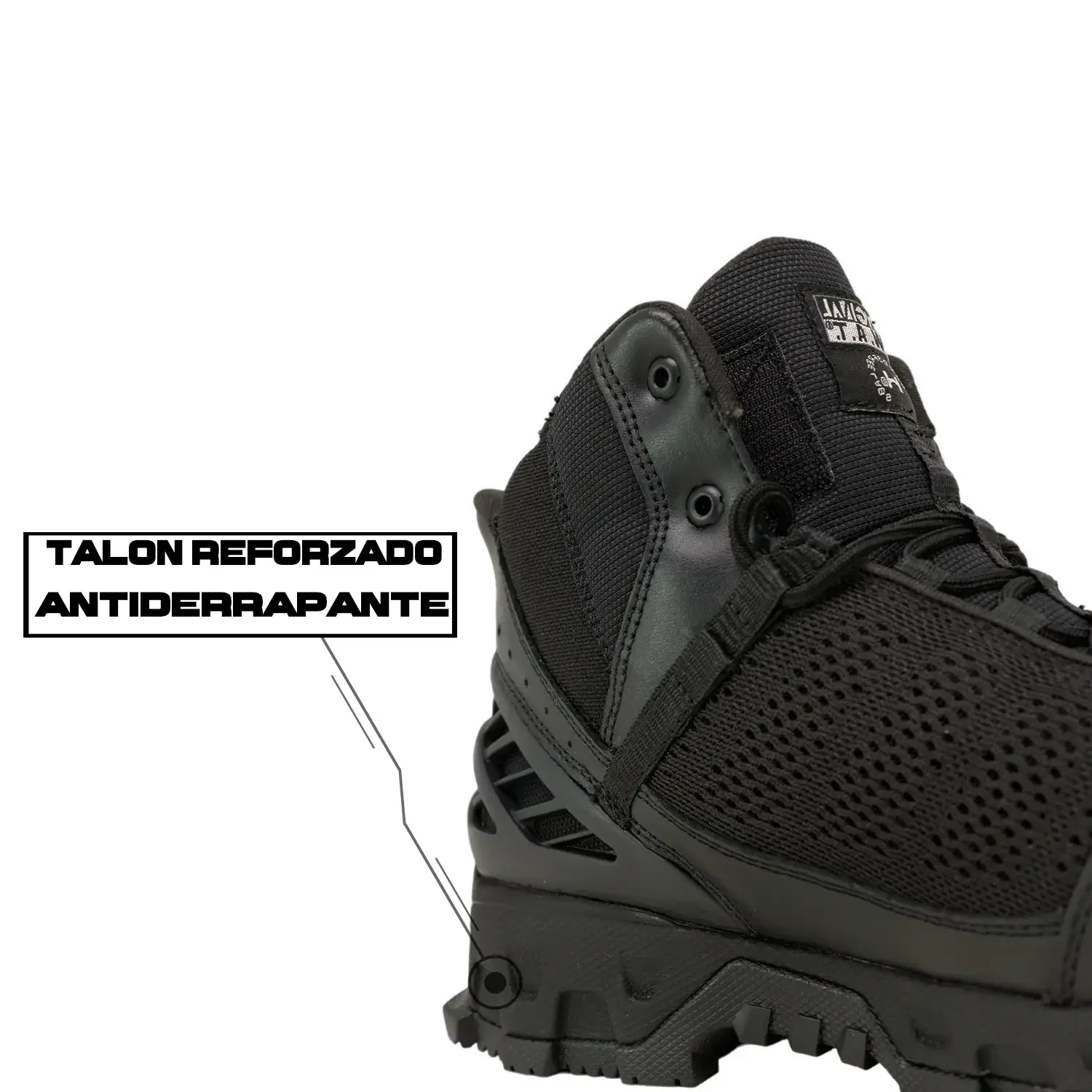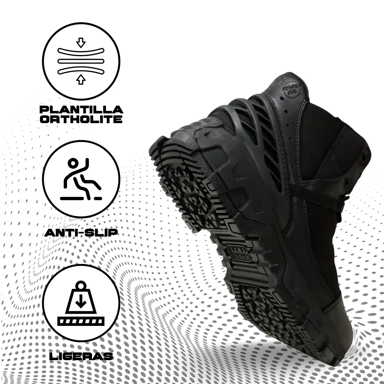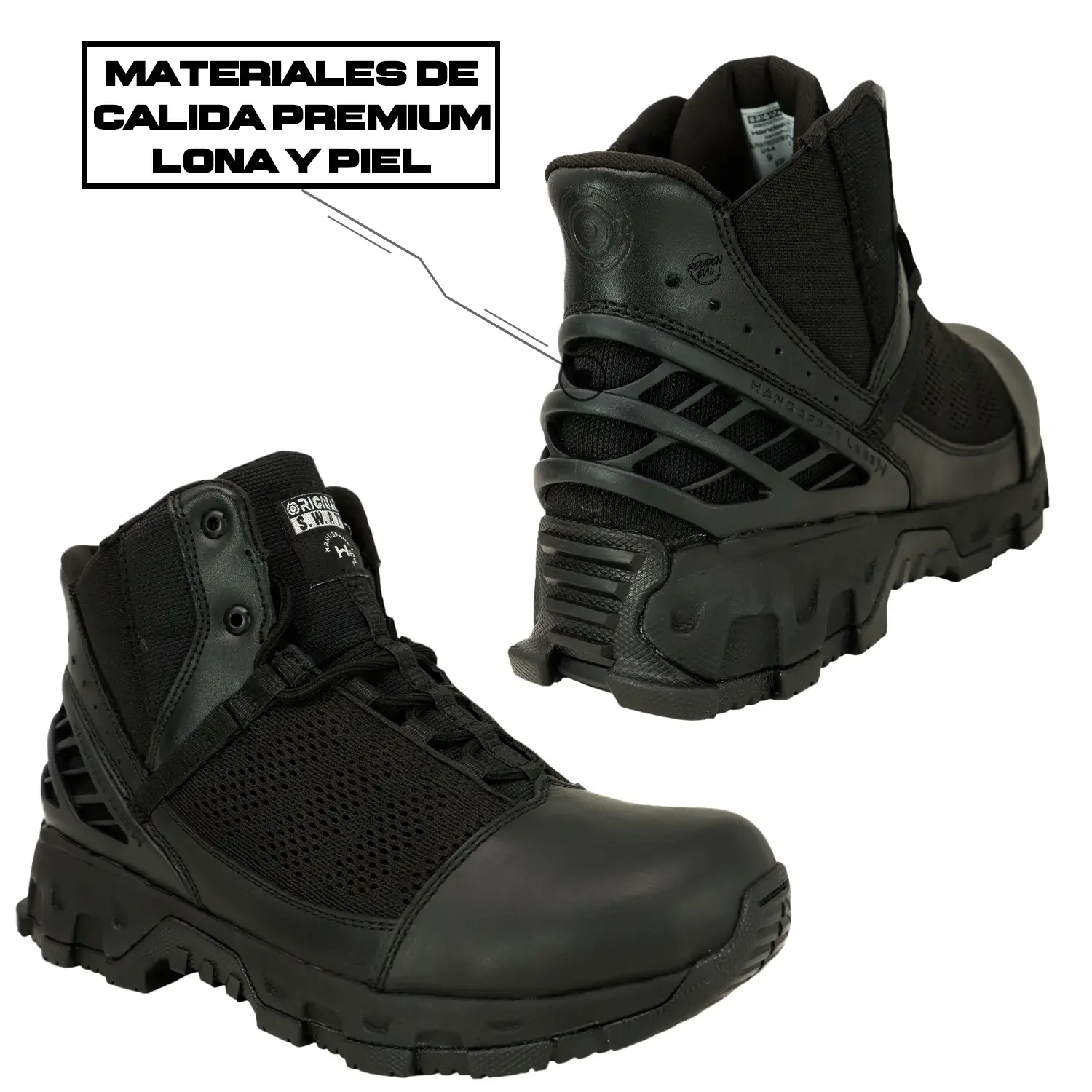 **Construcción Resistente:** Fabricadas con materiales de primera calidad, estas botas tácticas están diseñadas para resistir el desgaste diario y los entornos hostiles. Su construcción robusta y duradera asegura una protección confiable para tus pies en todo momento.
