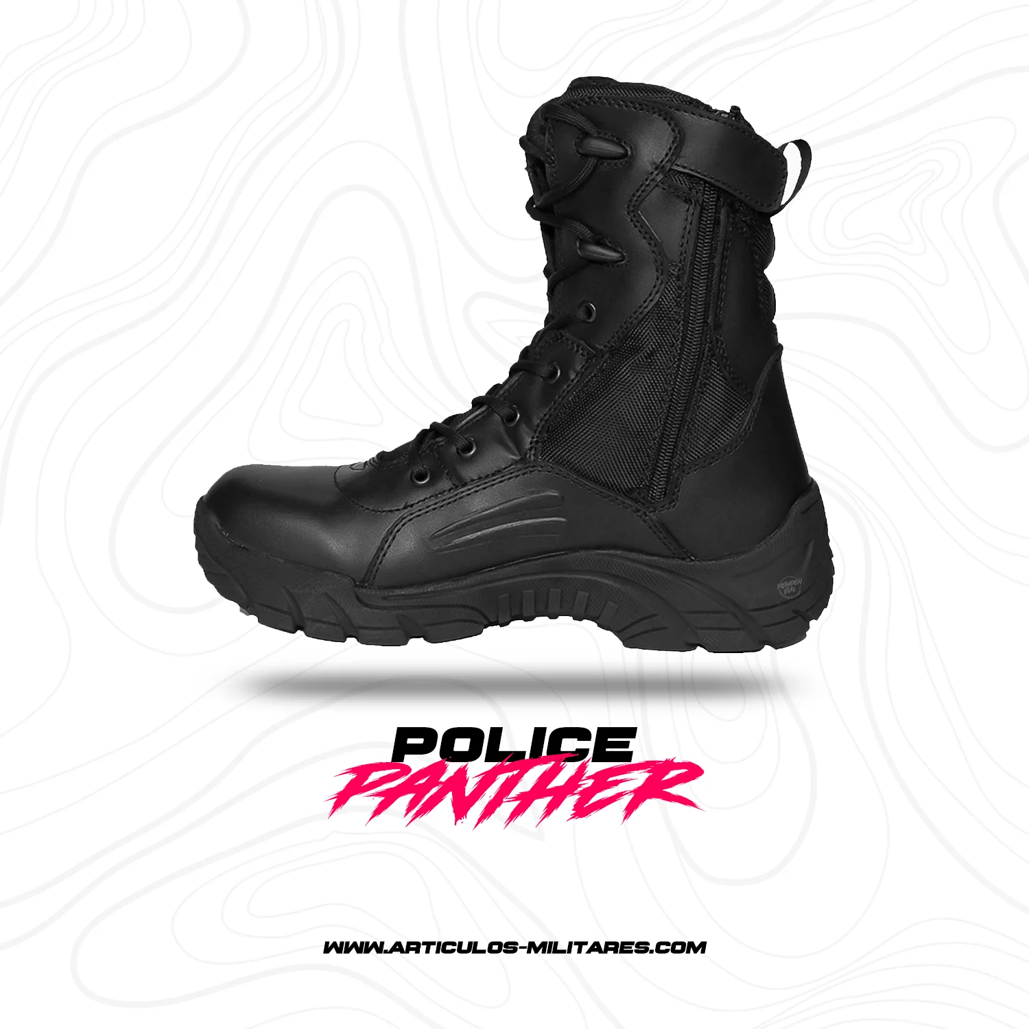 Calzado bota táctico 9 pulgadas de alto color negro de piel napa pigmentada negro co 2,1 mm de espesor promedio