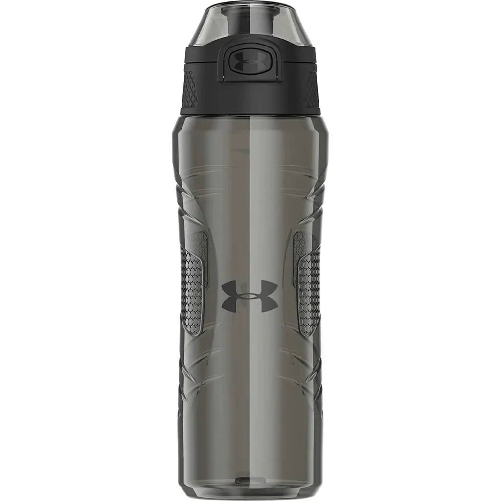 Sin BPA proporciona hidratación, no tóxica segura, en uso después de su uso. Resistente a los golpes, apto para lavaplatos Eastman TritanCopolyester Fabrication ofrece un rendimiento duradero. Hydrate mientras usted tren con una sola mano, botón de operación. Bloqueo de flip-top, tapa antigoteo asegura líquido permanece poner duro no importa cómo usted juega. Con agarres significa sweaty palms no ponerse en el camino de hidratación. Fabricado por Thermos & # 174;, licensee exclusivo de Under Armour & # 174;. Capacidad: 24 oz..