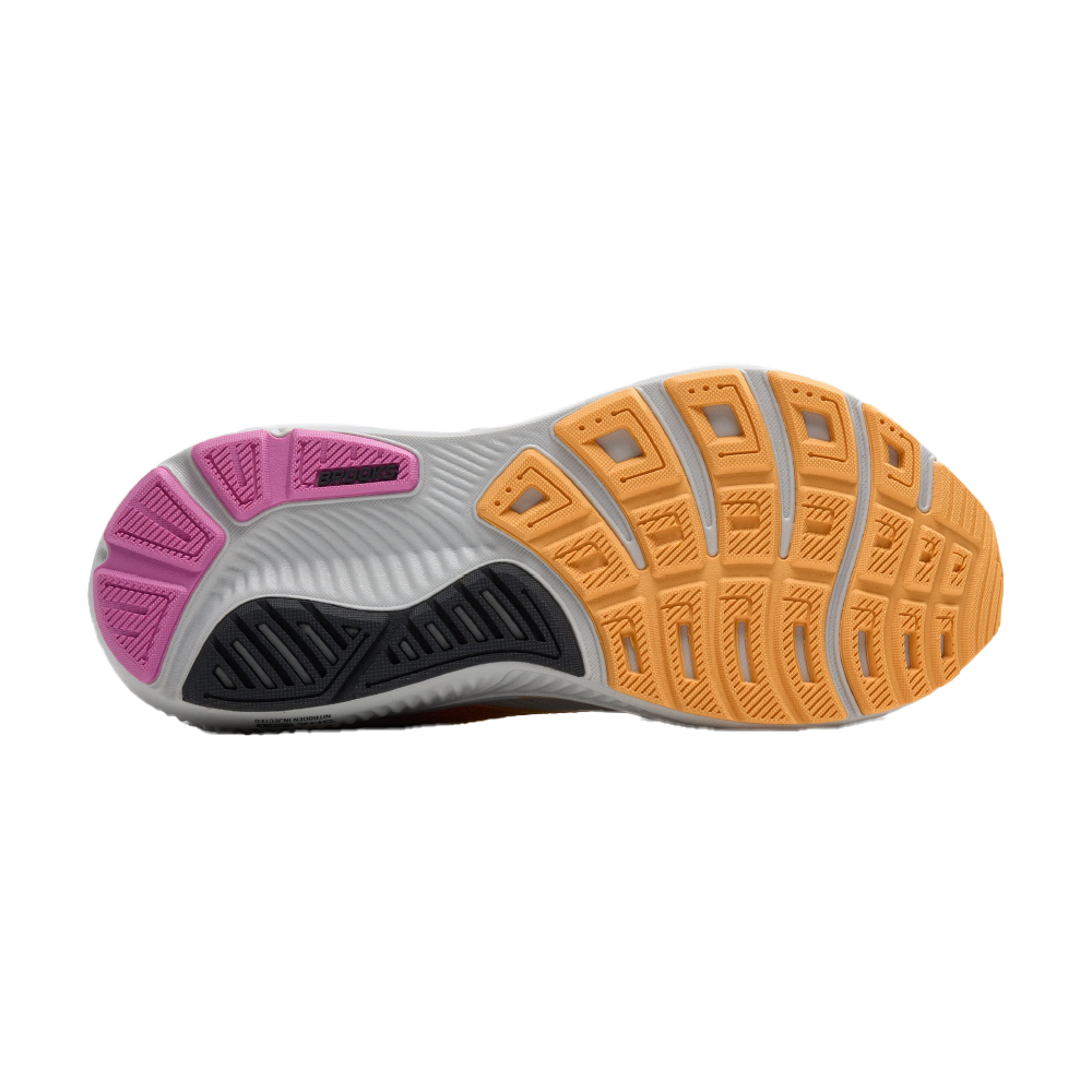Brooks ha actualizado la goma de la suela exterior, mejorando su agarre y rendimiento en una mayor variedad de superficies, desde asfalto hasta caminos de tierra compacta. Lo interesante es que esta mejora no ha venido acompañada de un aumento de peso, manteniéndose como una zapatilla ligera dentro de su segmento. Esta suela más adherente aporta una mayor seguridad sin sacrificar sensaciones durante la transición de la pisada.