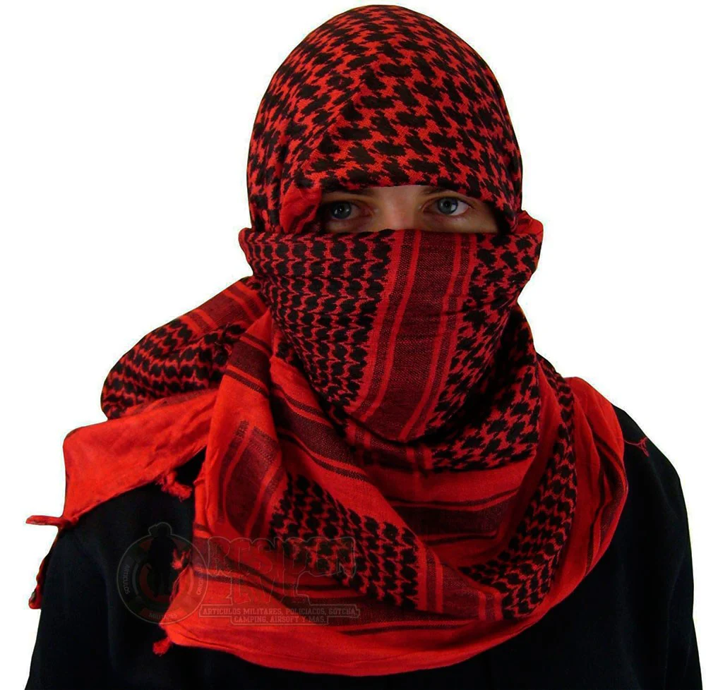 Bufanda Arabe Shemagh Palestina Rojo con Negro Algodón Militar
