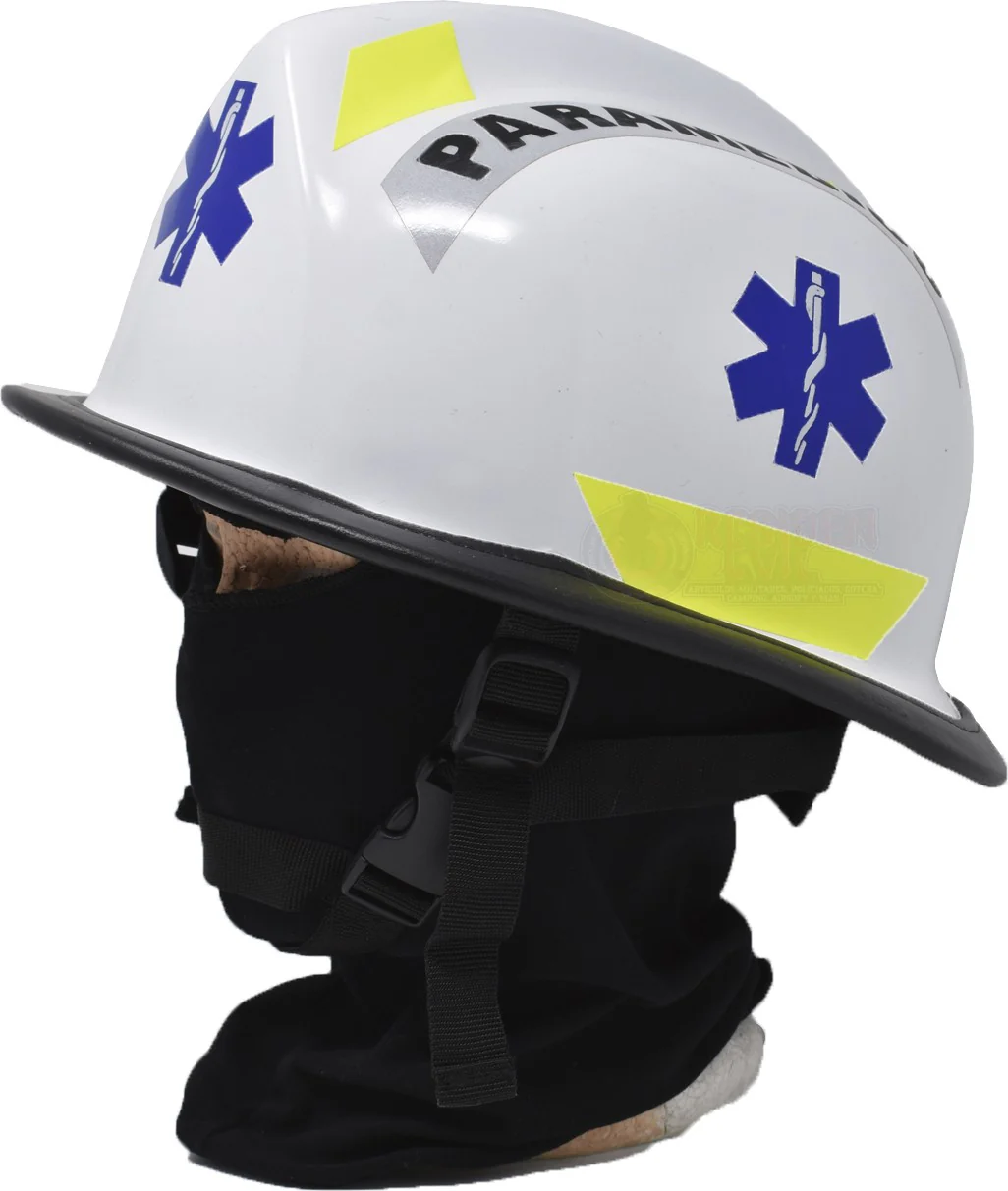 Las orejeras largas y la cañuela protegen zonas delicadas, mientras que el sujetador de goggles y el barbiquejo con hebilla de liberación rápida y ajuste deslizable facilitan su uso y aseguran un ajuste firme y cómodo. La carcasa y el forro termoplásticos resisten altas temperaturas, aumentando la seguridad. La rueda de trinquete cubierta de cuero permite ajustes precisos sin incomodidad, y los reflejantes Scotchlite™® mejoran la visibilidad en condiciones de poca luz, haciendo que este casco sea una herramienta confiable que simplifica la labor paramédica en entornos exigentes.