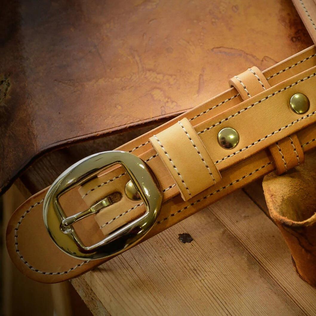 Cinturón tipo ranger en piel de vacuno de primera calidad de curtición vegetal. Tiene un ancho de 45 mm y puede prepararse en largos extra grandes.