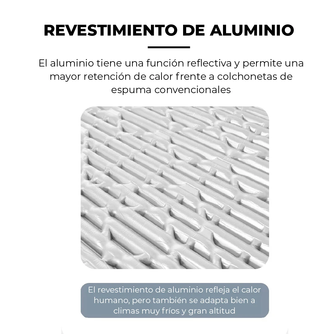 La colchoneta de espuma plegable aluminizada X-Large de Naturehike está hecha de espuma IXPE y una película de aluminio. Esta colchoneta aislará el frio y la humedad del suelo. Su diseño acanalado con ranuras permitirá retener el aire caliente y la lámina de aluminio reflejará el calor del cuerpo. Además, tiene un mayor espacio para darte libertad de movimiento y gran confort.