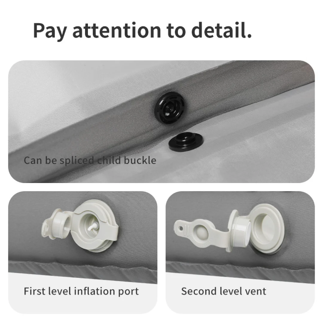 • Su sistema de conexión múltiple permite unir varias colchonetas del mismo modelo, creando un espacio amplio para que duerman dos o más personas.