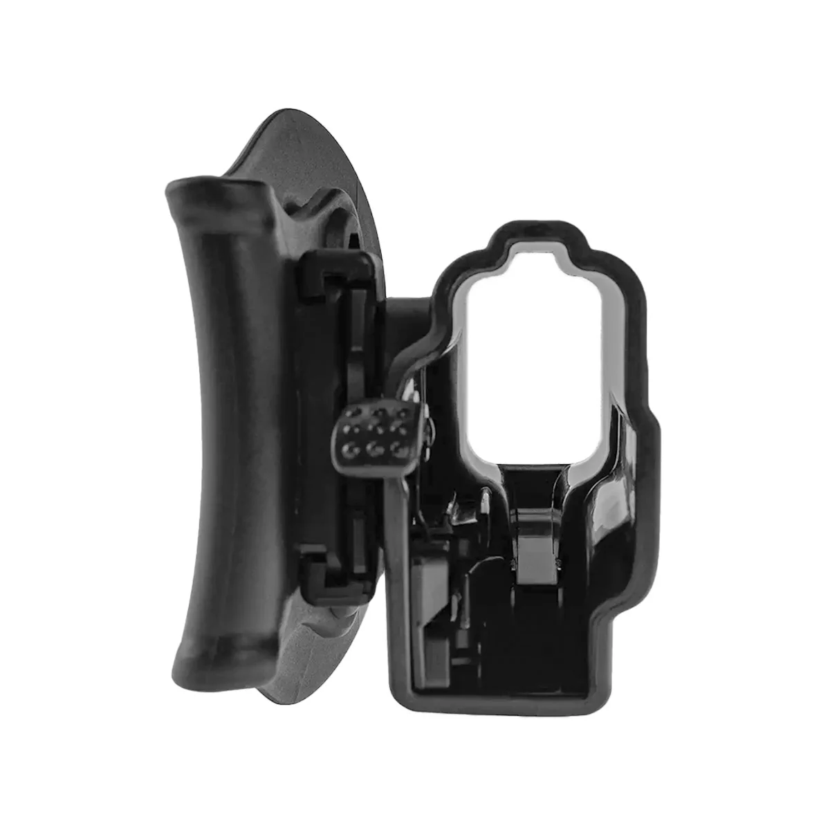 Compatible con paddle, belt clip, sistema molle, plataformas de piernera y sobaquera con sistema de engranaje con un tornillo. Ajustable en ángulo de posición.