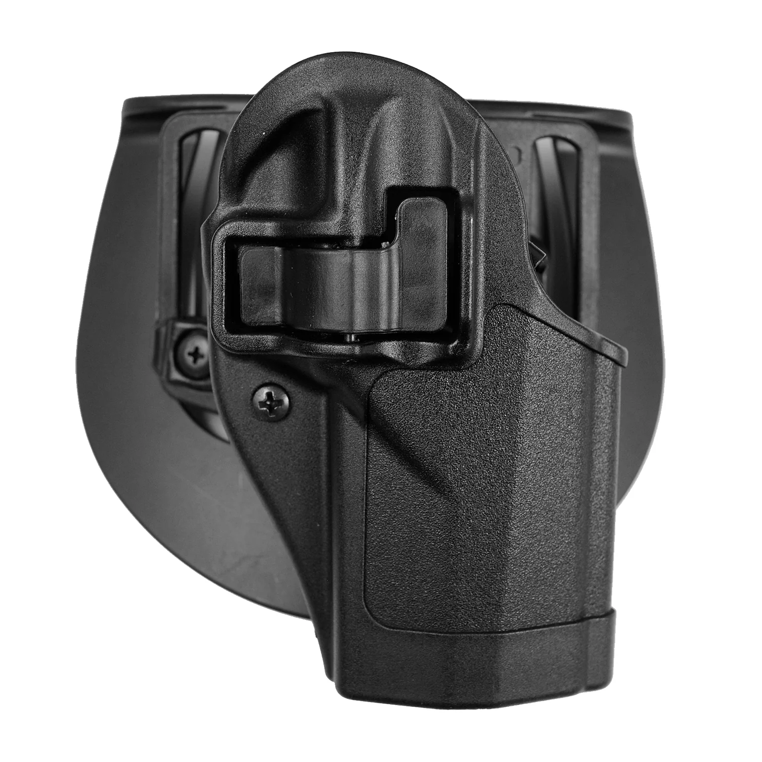 **Diseño Ergonómico y Seguro:** La funda de BBLACKHAWK está específicamente diseñada para un ajuste perfecto con las . Su sistema de retención asegura que tu arma permanezca segura en todo momento, proporcionando una protección adicional contra desarmes accidentales.