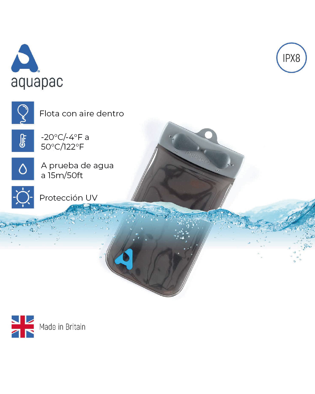 • Esta funda Aquapac NO está pensada por absorber impactos y golpes.