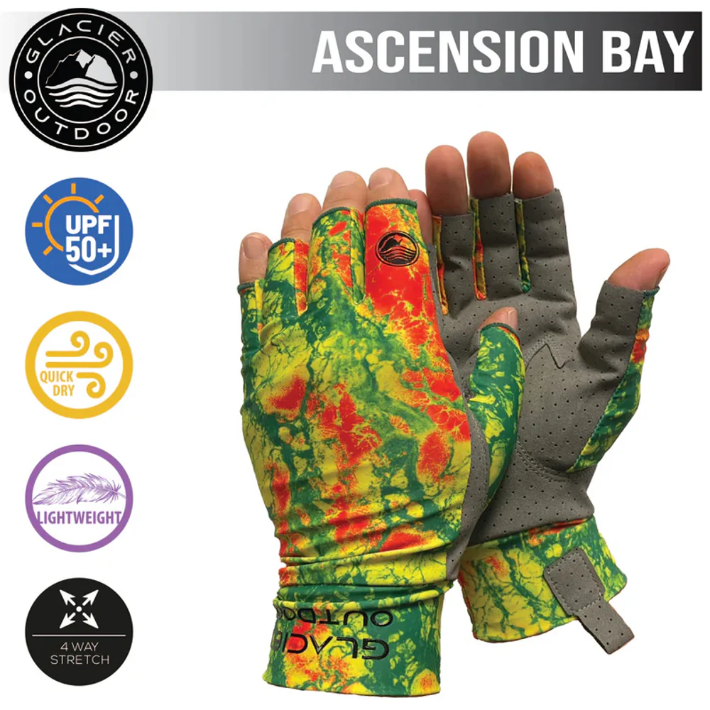 Protege tus manos de la radiación dañina de los rayos UV y mantente cómodo con los guantes Ascension. Fabricados con materiales de secado rápido y con piel sintética en la palma del guante para un mejor agarre (Abarca toda la palma). Estos guantes tienen protección UPF 50+ y son perfectos para pescar, o hacer cualquier actividad donde tengas que protegerte del sol.