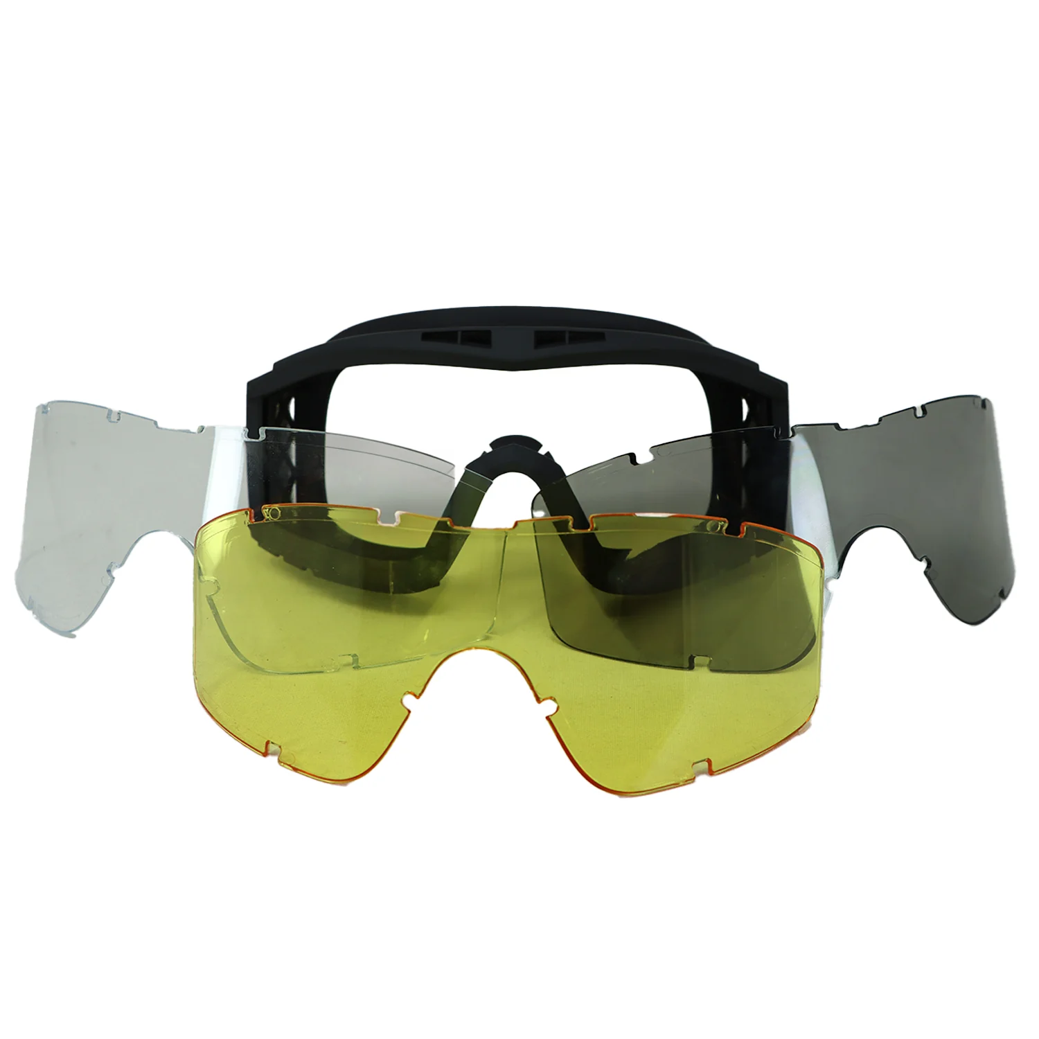 Éstos goggles van dirigidos a un uso militar o policial, pero se adaptan perfectamente para el ciclismo. Cuenta con un juego de micas resistentes a rayaduras de repuesto, una en color humo, otra en ámbar y la última transparente. El sistema de anclaje de las micas a la carcasa de los goggles este compuesto por pequeños seguros que facilitan el retiro o instalación de las micas.