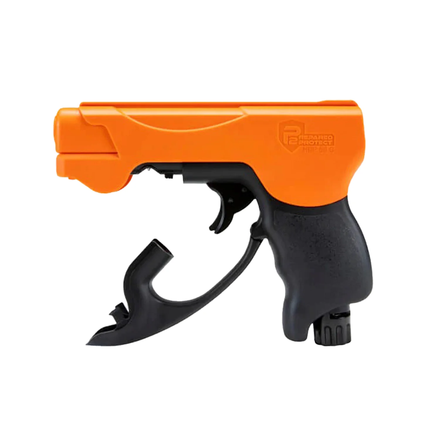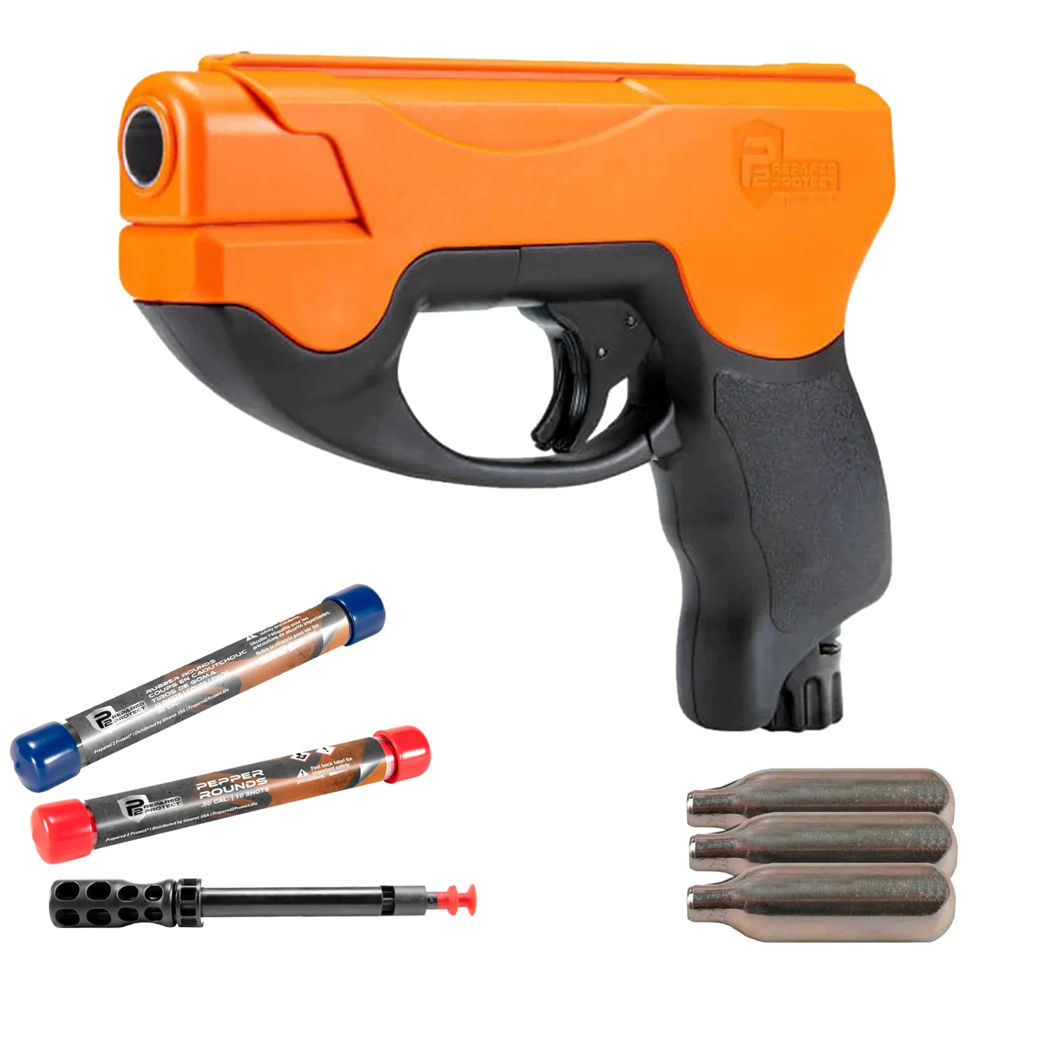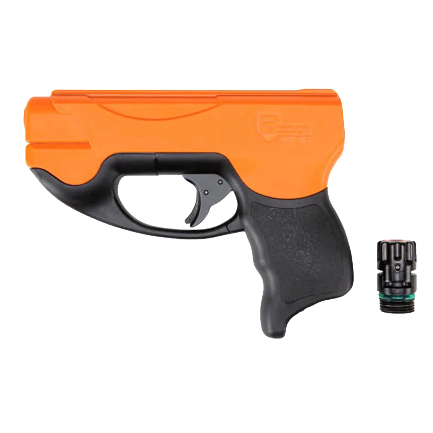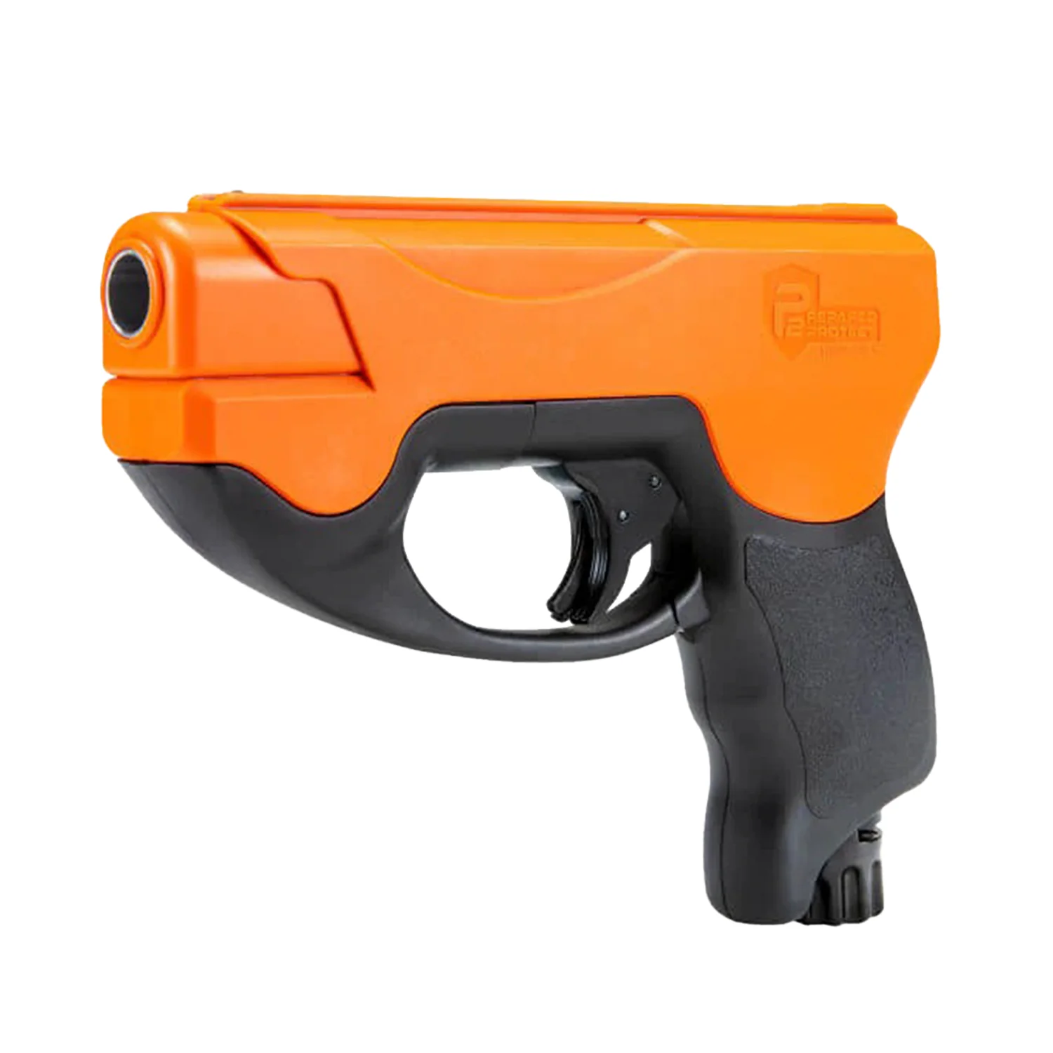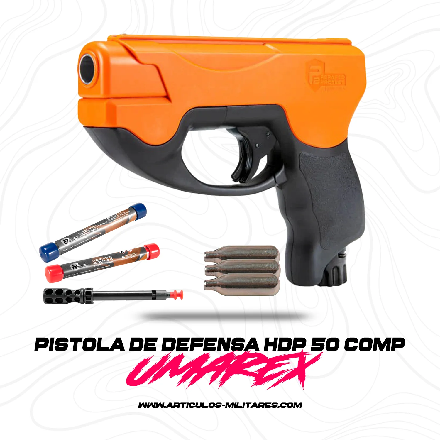 La pistola P2P HDP 50 Compacta dispara bolitas de pimienta. Fue desarrollada por Umarex para la protección de las familias y sus bienes. Ofrece tranquilidad cuando hay niños presentes y/o no se desean utilizar armas de fuego. Su cargador de carga rápida es fácil de usar, se activa instantáneamente con un toque firme de la perilla ubicada en la parte inferior de la culata y tiene capacidad de 4 tiros de bolitas de pimienta calibre .50.