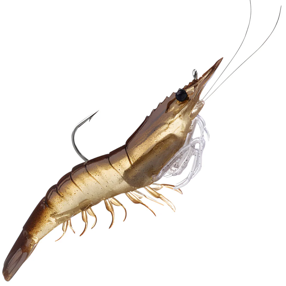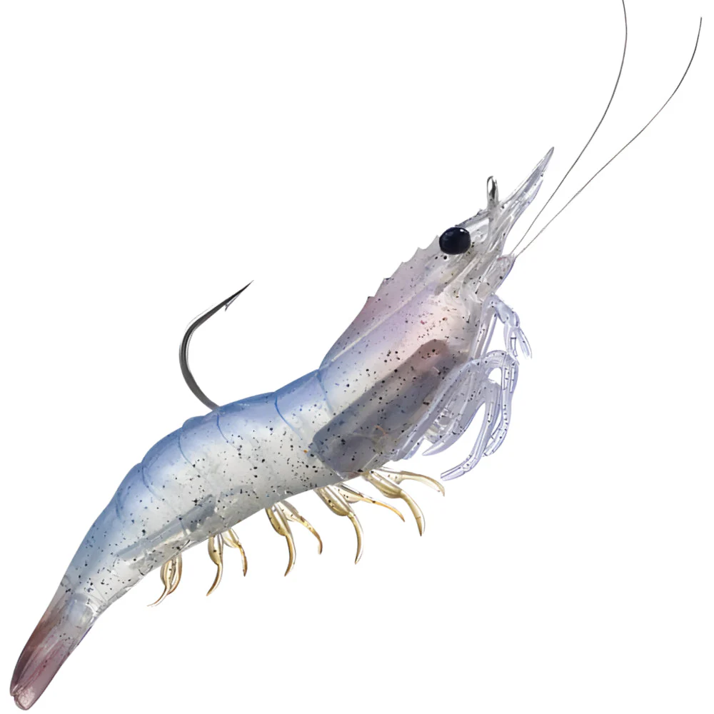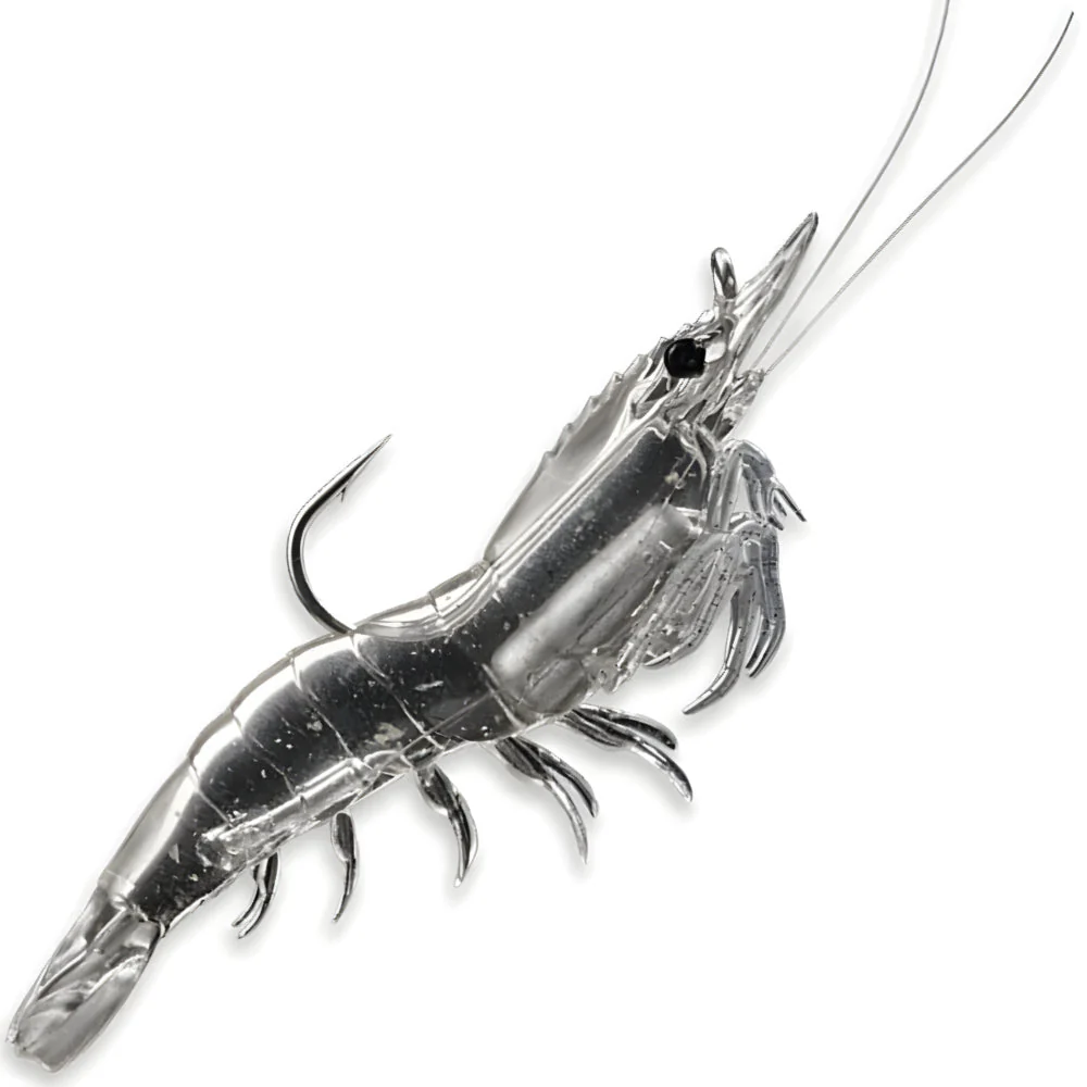 Imitación ultra realista de una camarón. Listo para usarse (Incluye anzuelo y peso).