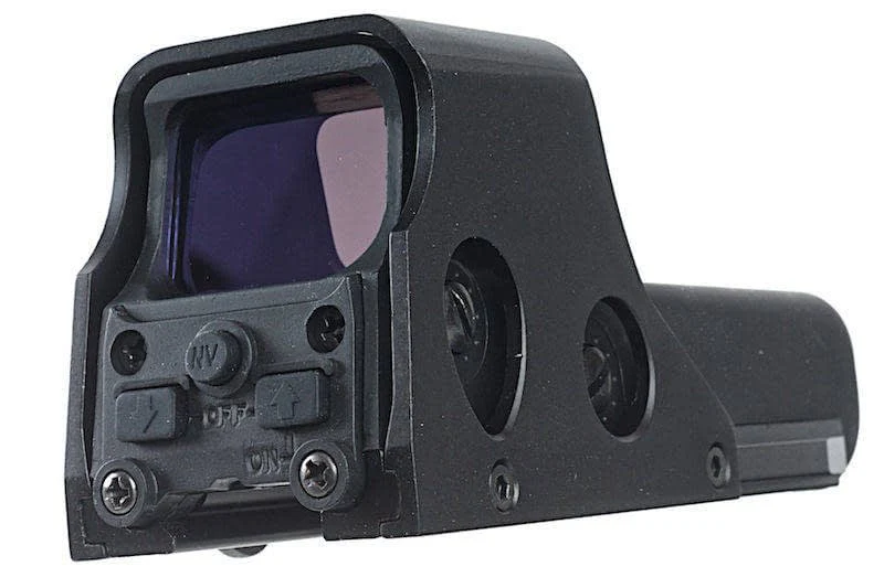 El OPEN Tactical552 Holosight está hecho de aluminio y plástico estables.Tiene botones de ajuste dirigidos al tirador con los que se puede encender / apagar el dispositivo de puntería.Además, la retícula redonda se puede cambiar de rojo a verde y el brillo se puede ajustar 10 veces.