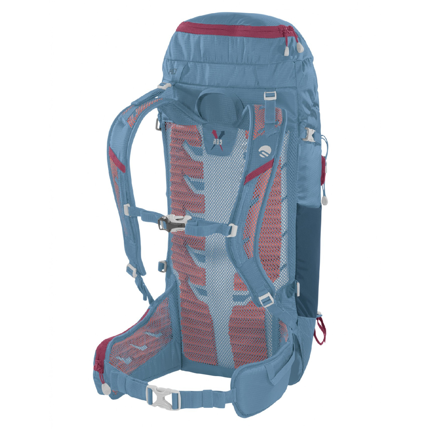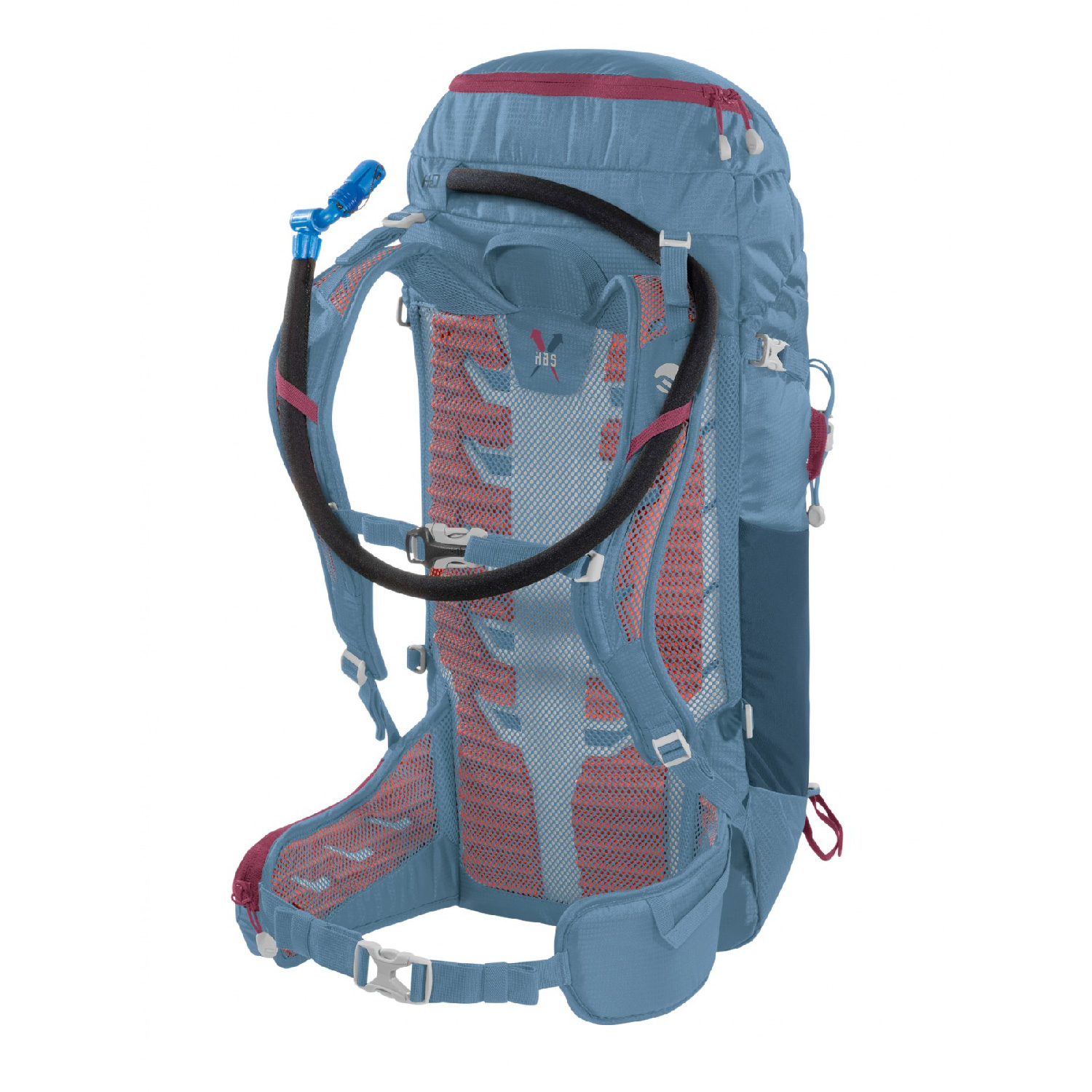 - Posee el Hollow Back System, que consiste en correas para los hombros y cinturón muy transpirables gracias a la combinación de rellenos preformados con canales de ventilación y un tejido reticular muy transpirable.