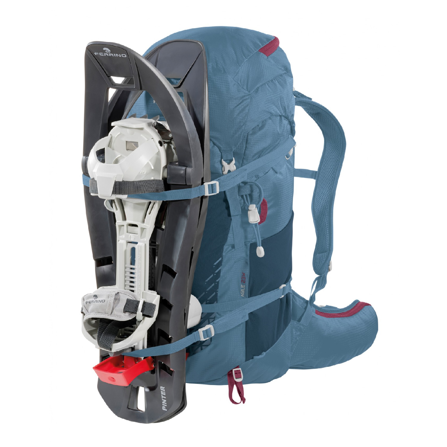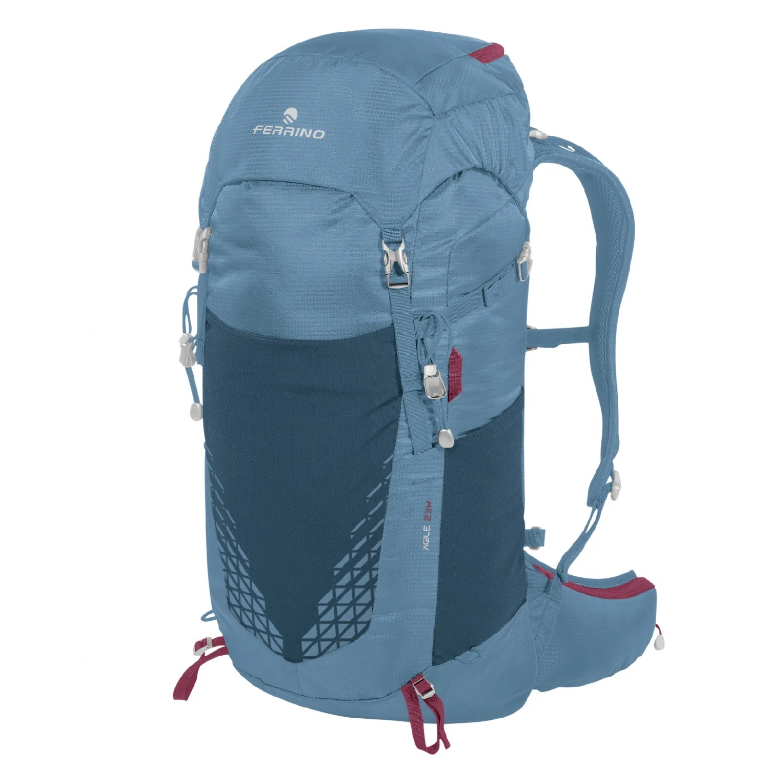 - La mochila de senderismo Agile Lady 23L de Ferrino cuenta con correas para los hombros y cinturón lumbar específicamente perfilados para adaptarse a la fisionomía femenina.
