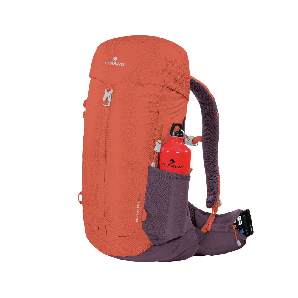 - La mochila de trekking Hikemaster Lady 24L de Ferrino está fabricada en Nylon 210D Hexagonal, esta mochila combina ligereza (910 g) con una resistencia excepcional al desgaste, ideal para senderismo activo y excursiones rápidas.