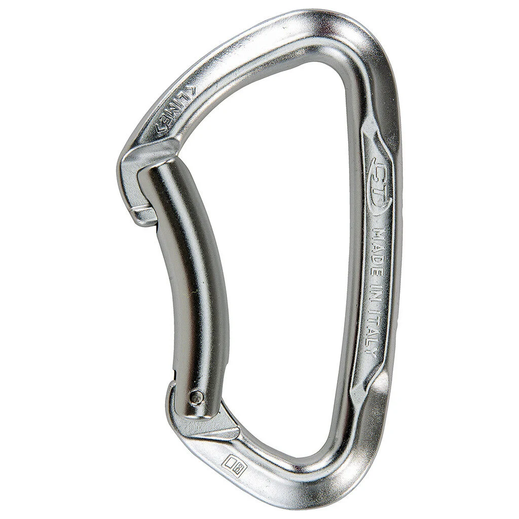 Mosquetón compacto y clásico de aleación ligera forjado en caliente con gatillo curvo, diseñado para el alpinismo y la escalada deportiva en general.