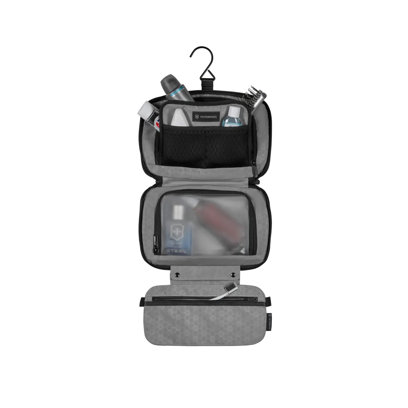 - El neceser de Viaje con Gancho Zip-Around de Victorinox organiza tus artículos de tocador y ocupa un espacio mínimo.