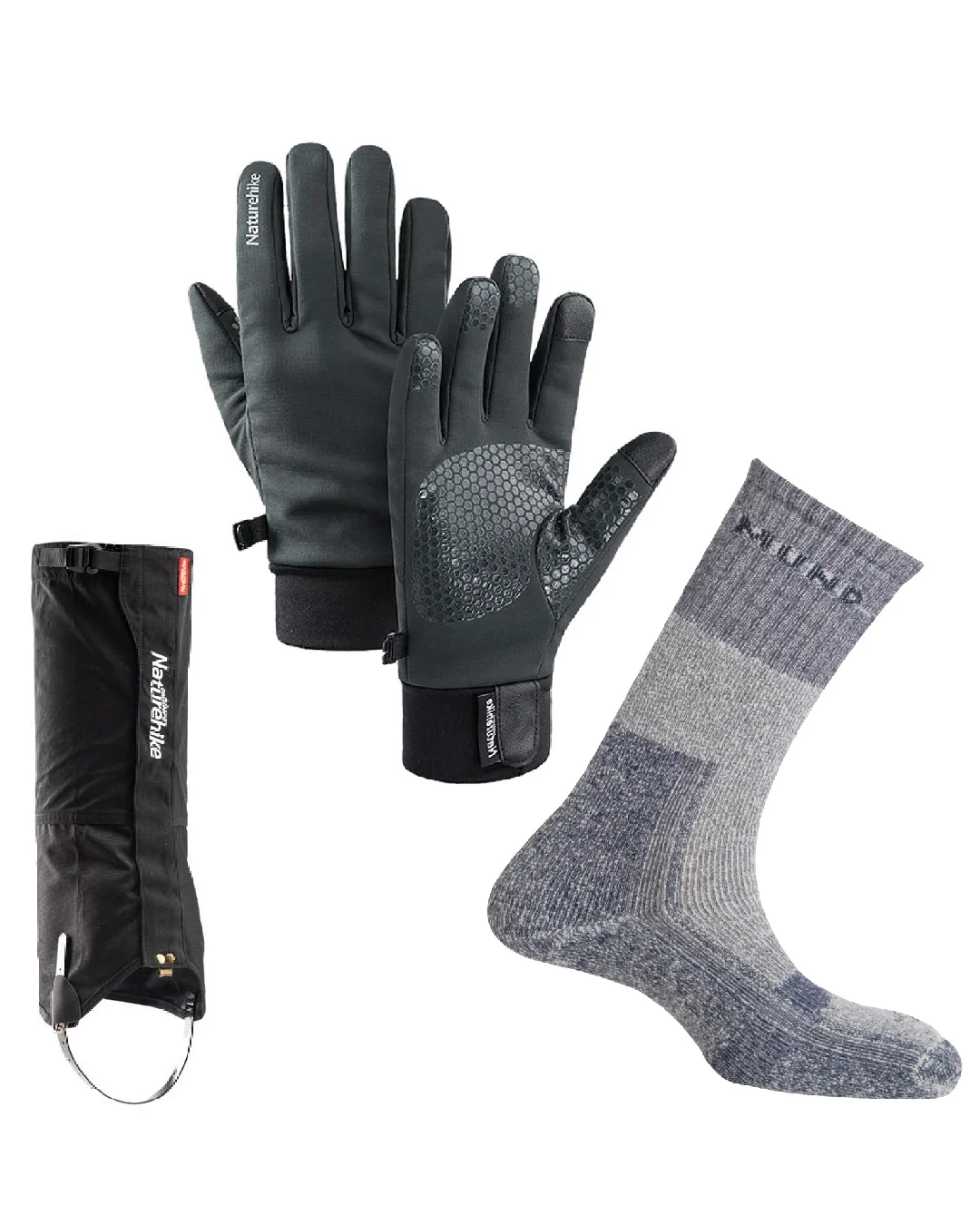 Con este pack podrás enfrentar las condiciones más extremas de la montaña y llegar hasta la cumbre, por eso su nombre. Incluye unos guantes térmicos y unas medias térmicas. Tienes diferentes modelos de guantes y medias para elegir y puedes combinarlos con unas polainas para nieve si lo deseas.
