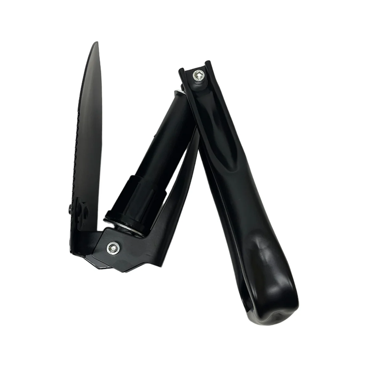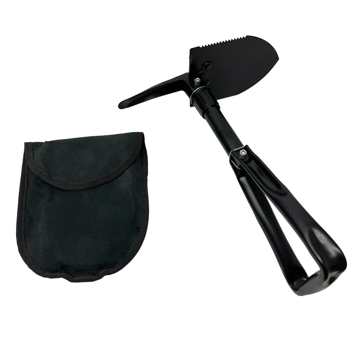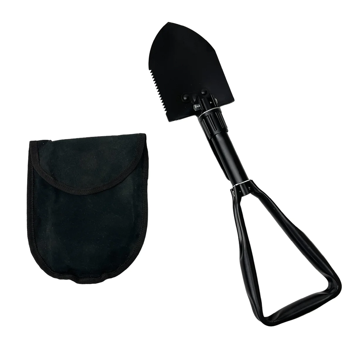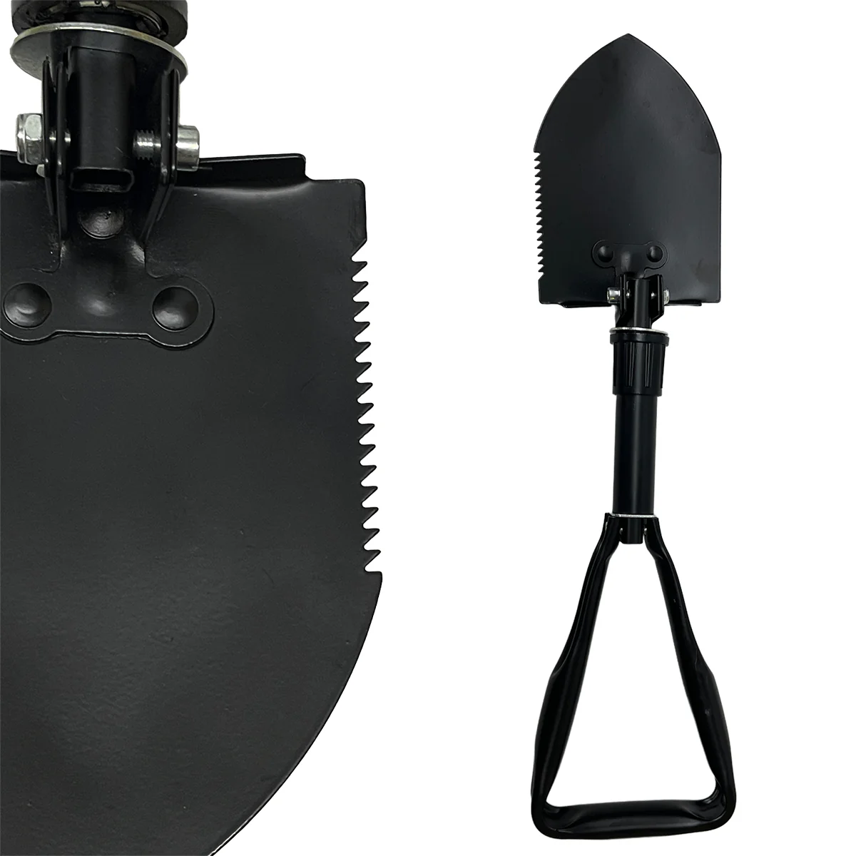 La Pala Portátil Grande Plegable de acero cuenta con una hoja de acero resistente con borde dentado y collar de bloqueo. Cuenta con funda resistente para transportarla fácilmente