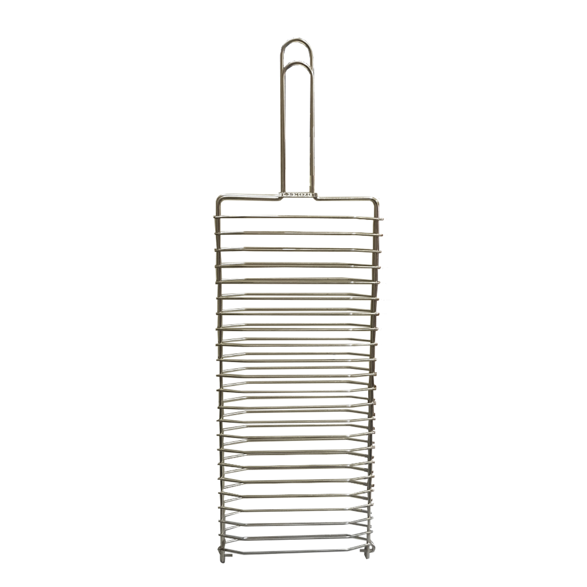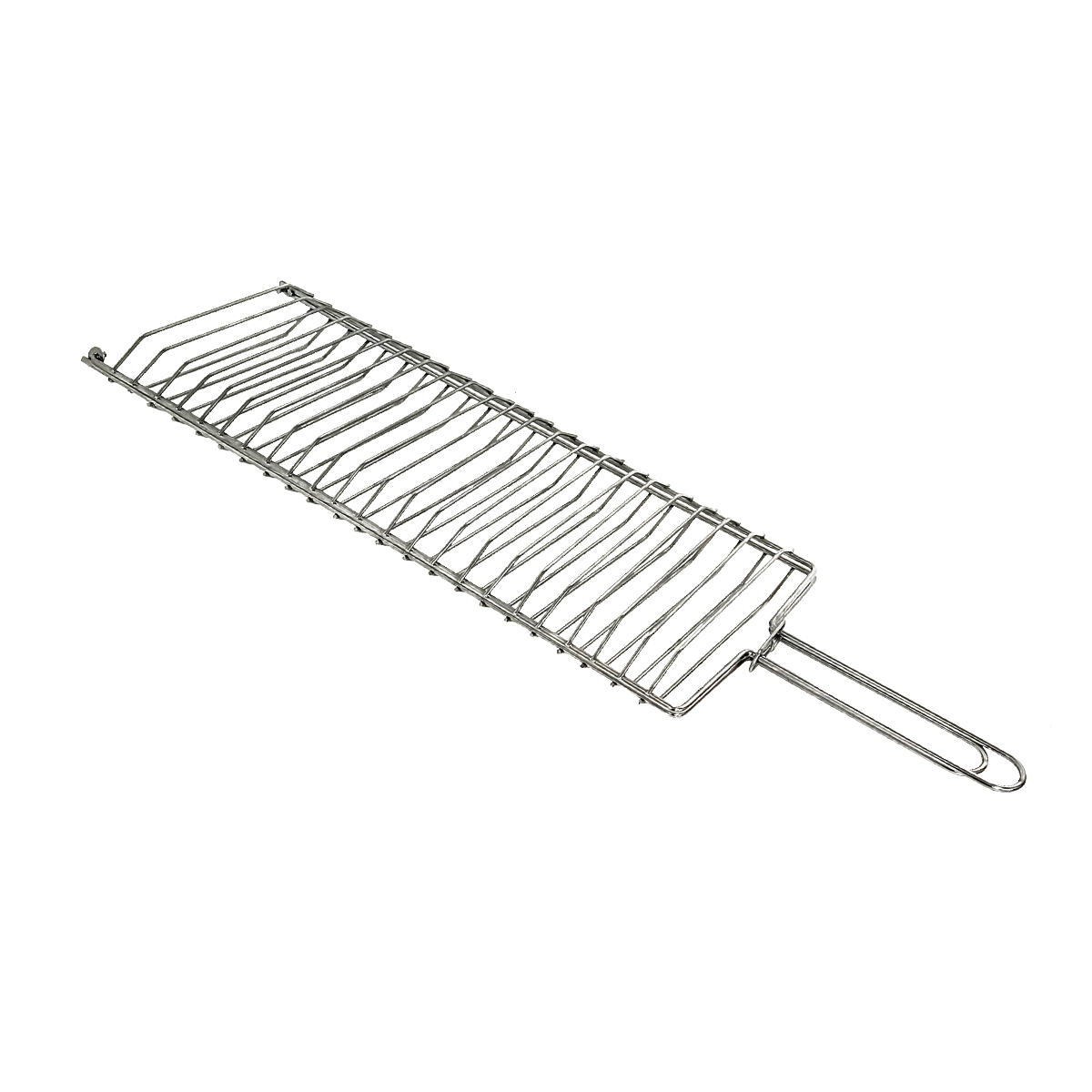 Parrilla para pescados, carnes y verduras de alambre cromado.