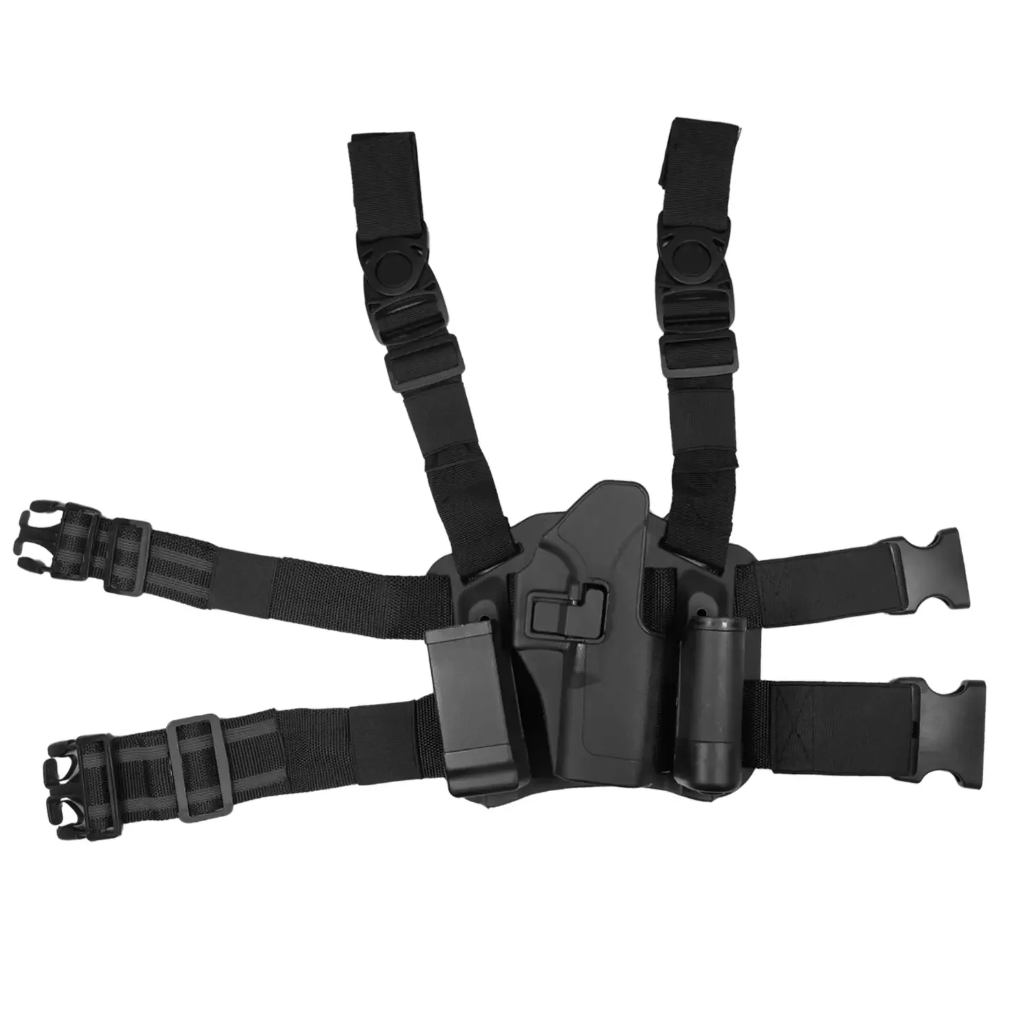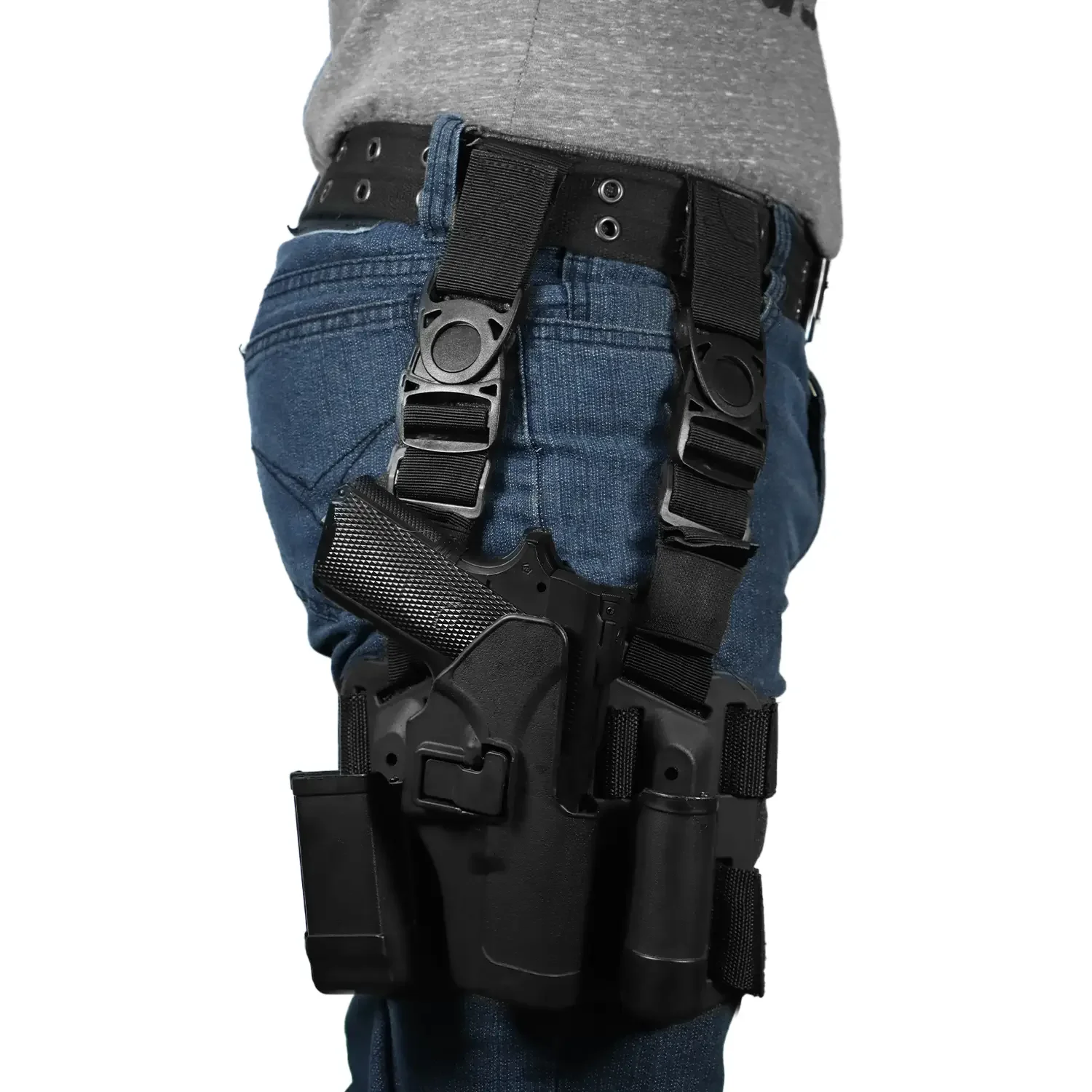 Esta funda para arma de color negro cuenta con correas ajustables antideslizantes para las piernas minimizan el movimiento y brindan la máxima comodidad