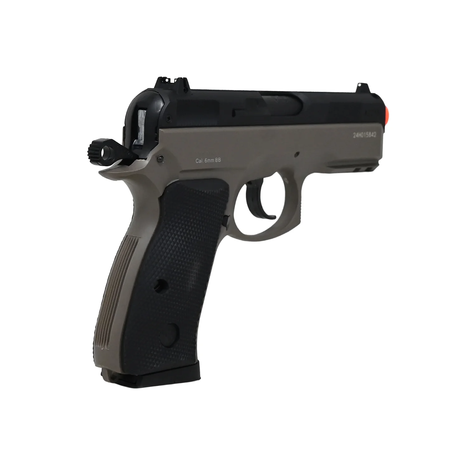 Esta pistola es para ti si buscas algo que realmente se sienta auténtico y confiable. No más complicaciones con baterías agotadas o cargadores de gas. Aquí mandas tú, con cada disparo accionado por resorte, sabiendo que cada movimiento depende solo de tu habilidad.