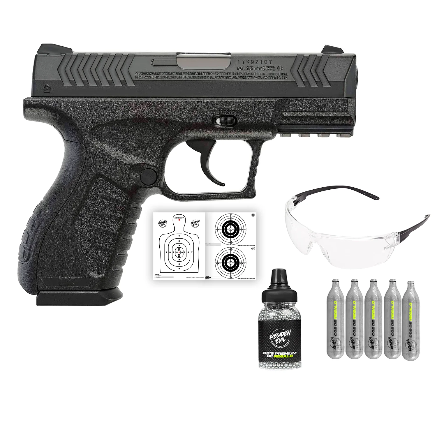 Los cartuchos de CO2 se insertan en la empuñadura, lo que permite una carga rápida y sencilla. Gracias a este sistema, la pistola es capaz de generar velocidades de hasta 410 pies por segundo (fps), lo que le otorga una excelente precisión y un rendimiento destacable en actividades como el tiro al blanco y la práctica de disparos rápidos.