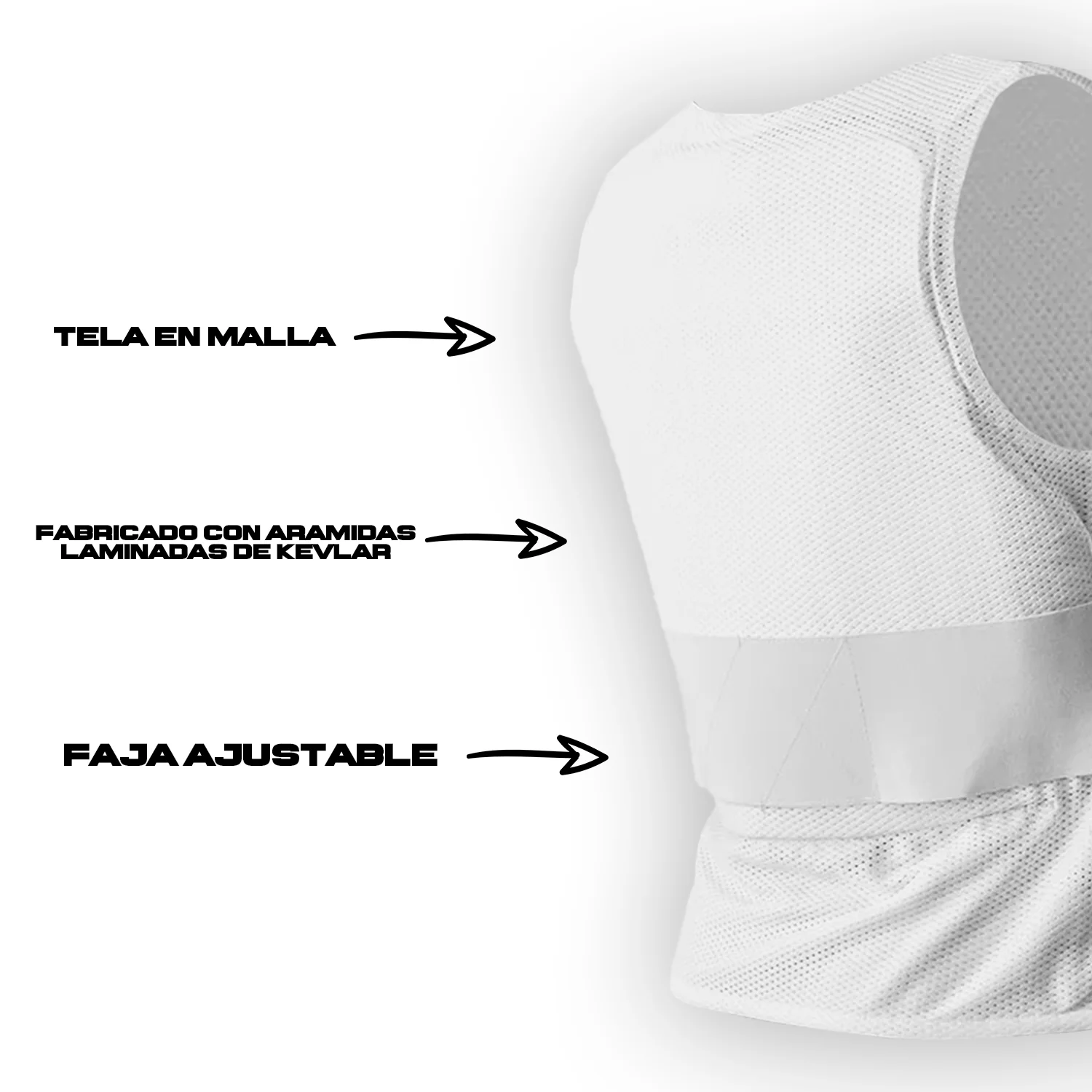 La prenda balística más discreta y cómoda, permite realizar todo tipo de tareas con una amplia movilidad, ligereza y ajuste perfecto al cuerpo, además mantiene total discreción al ser utilizada debajo de cualquier prenda de uso cotidiano o uniforme.