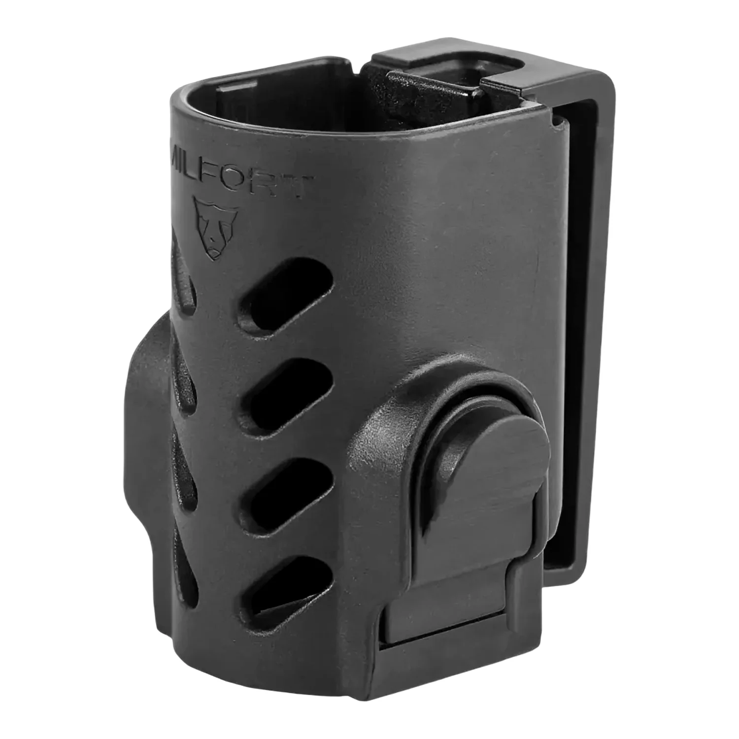Permite alojar la linterna rápida y segura, su diseño proporciona un ajuste confiable, posee 2 seguros laterales de fácil activación los cuales garantizan la sujeción de la linterna.