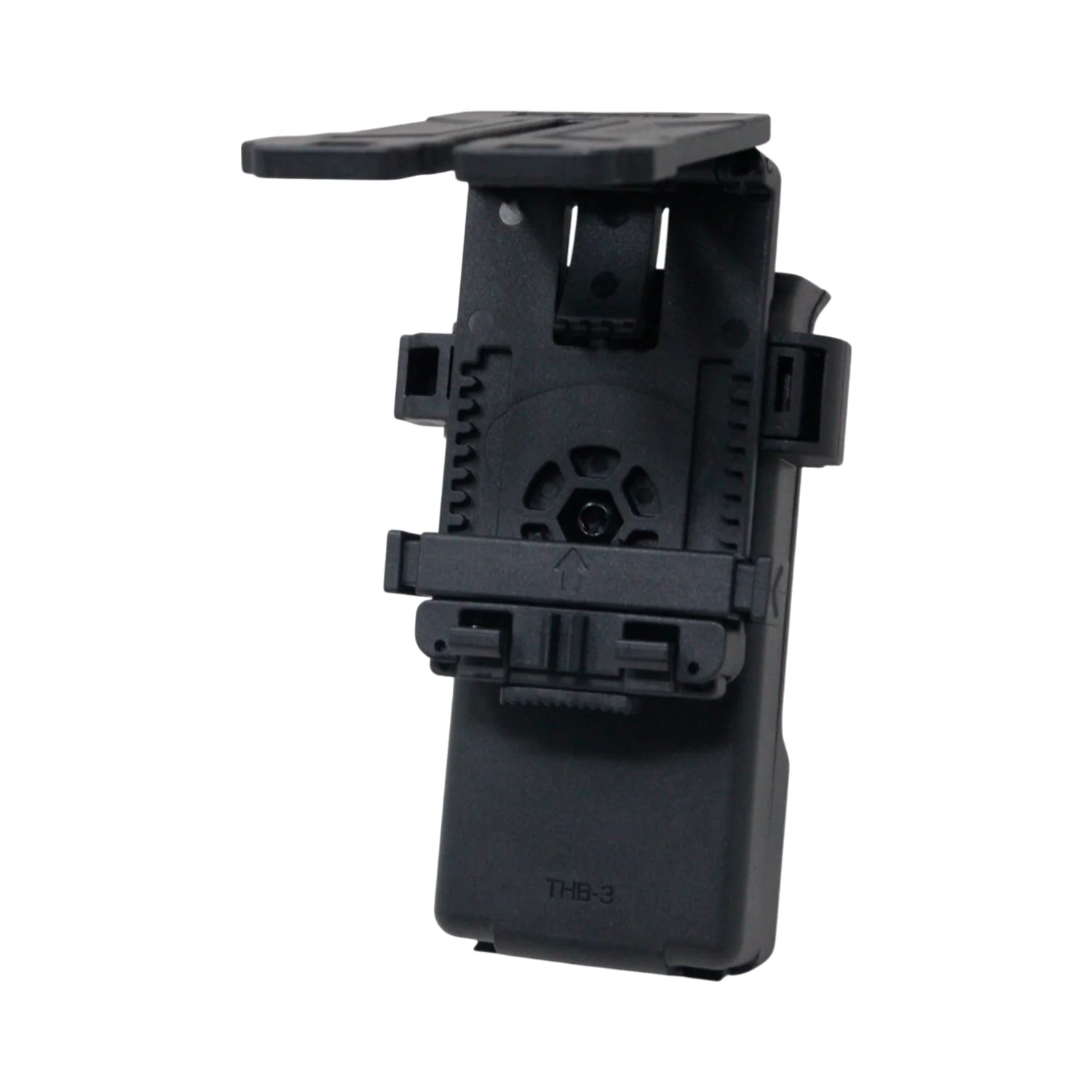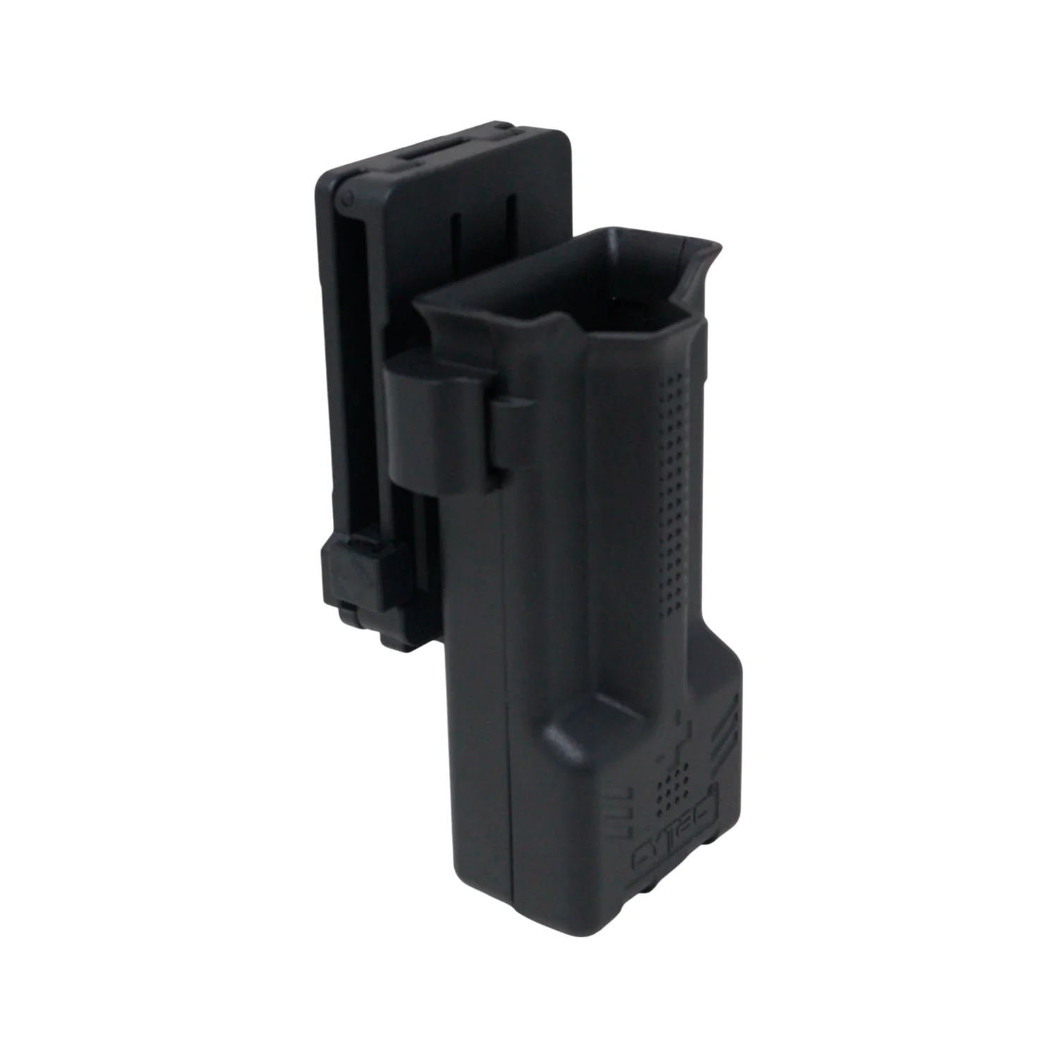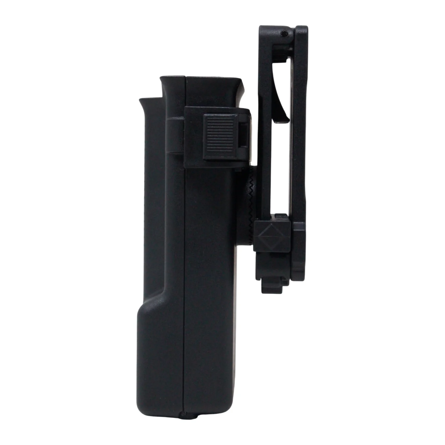 El clip adaptable se ajusta a diferentes tamaños de cinturón, brindando una sujeción firme incluso en movimiento. Además, su material de polímero de alta resistencia garantiza durabilidad en cualquier entorno, desde operativos tácticos hasta situaciones de rescate.