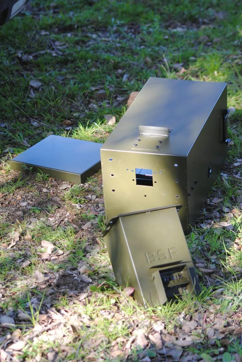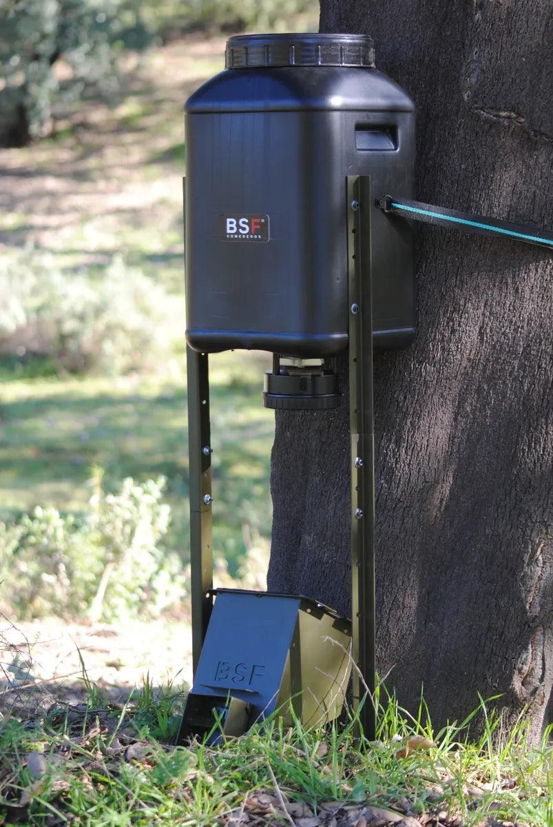 El Recipiente BSF Yimi es una solución avanzada para la gestión de la alimentación de jabalíes. Este recipiente está diseñado para optimizar el flujo de alimento dispensado por un sistema automático, permitiendo que el alimento sea canalizado de manera precisa hacia la Trampilla BSF Yimi, garantizando que solo los jabalíes tengan acceso a las raciones.