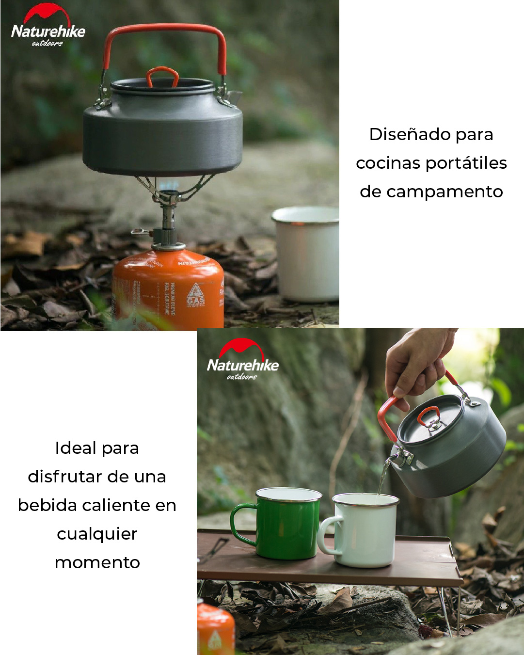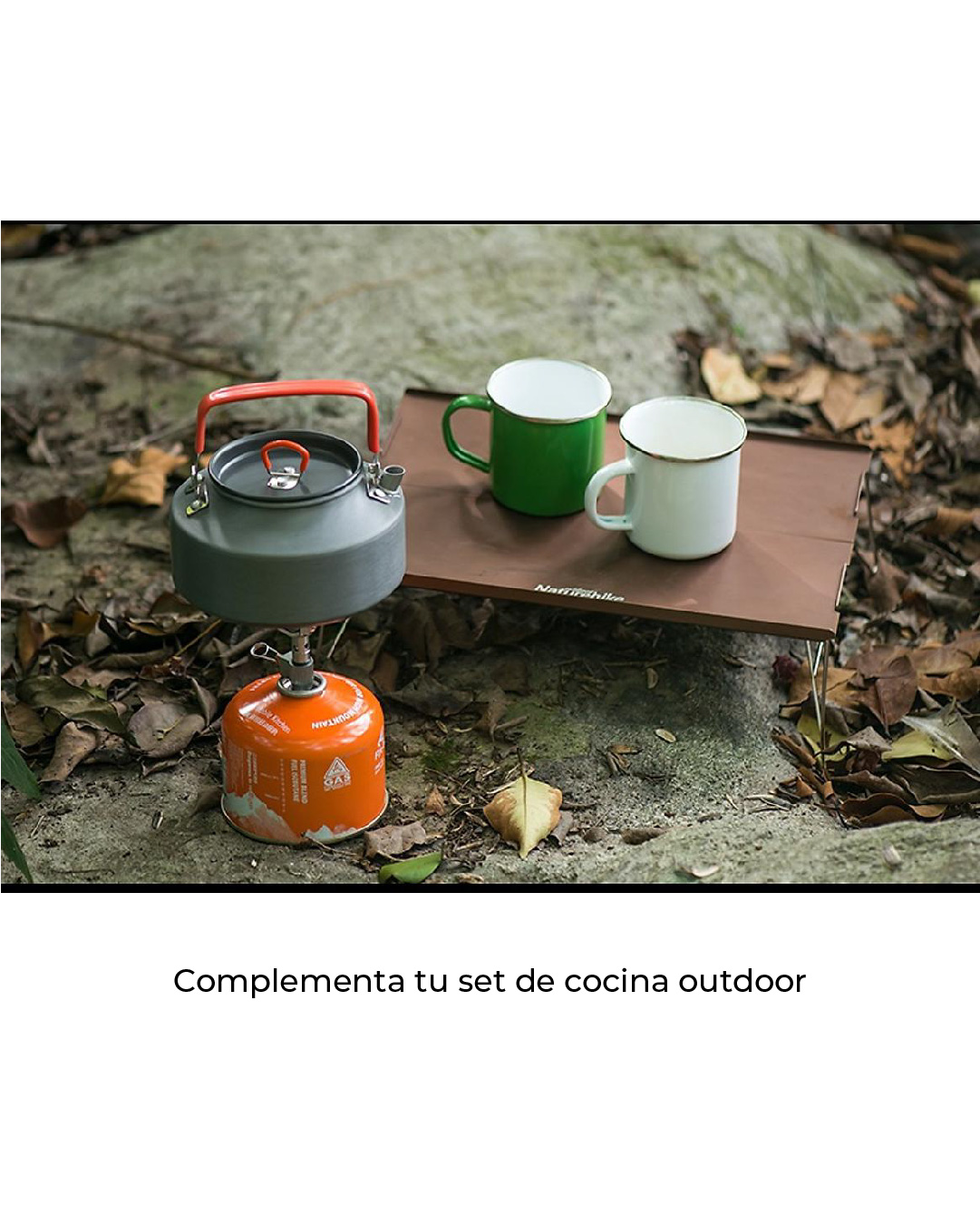 La Tetera portátil de campamento de Naturehike formará parte de tu kit de cocina outdoor. Con una capacidad de 1.1L y un peso de 190 gr, la llevarás a todas tus aventuras.