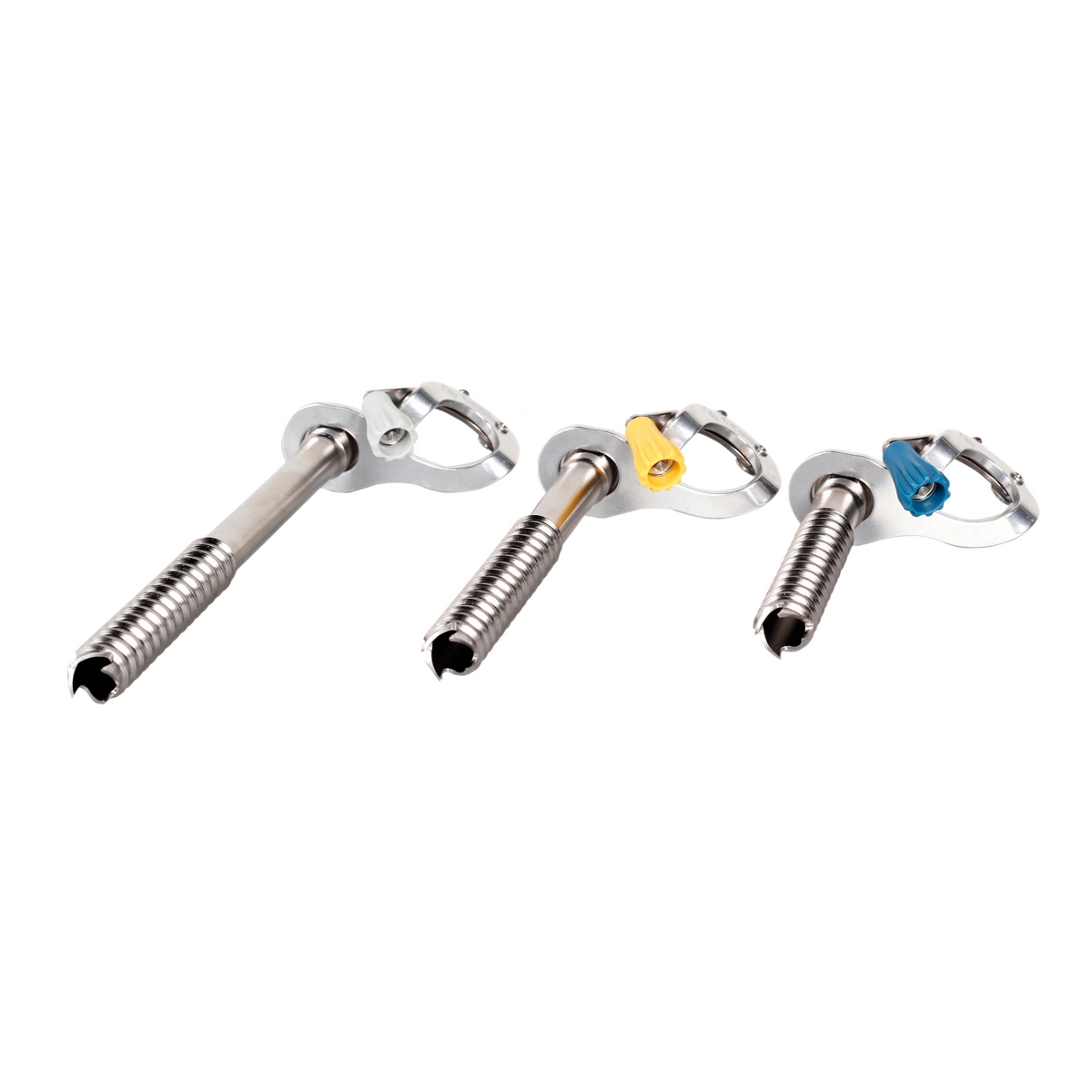 - El tornillo está disponible en tres longitudes diferentes (las variantes están codificadas por colores – azul, amarillo, gris).